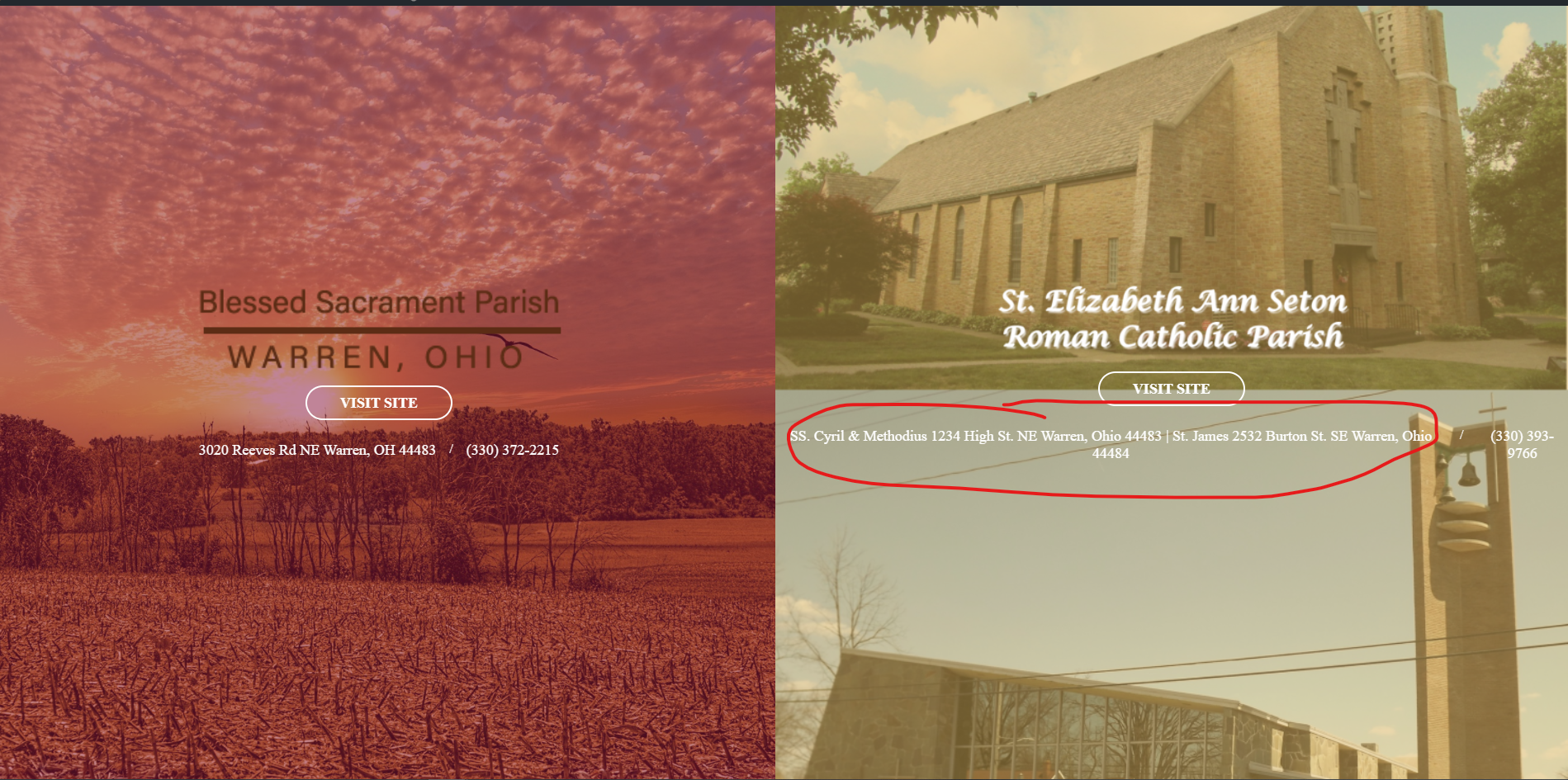 ✔ Fix the address bit on the real site for the Elizabeth Ann Seton side, by adding in another address field