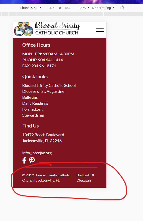 It should be the copyright first that goes the full width of the screen and then the Diocesan beneath it. Stacked. Thanks,