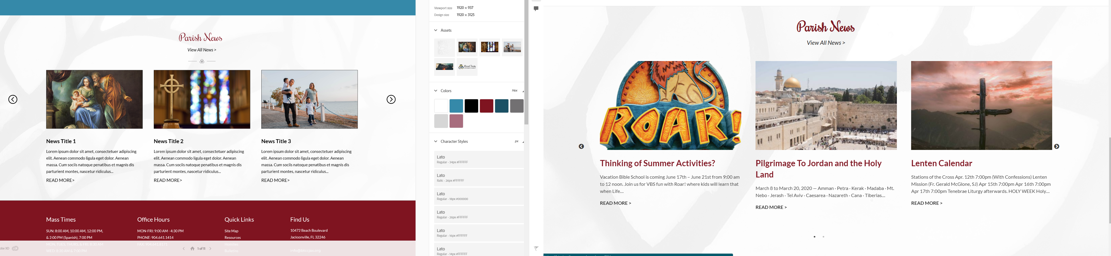 Mock-up versus actual - Section title font ("Parish News" needs to match mock-up