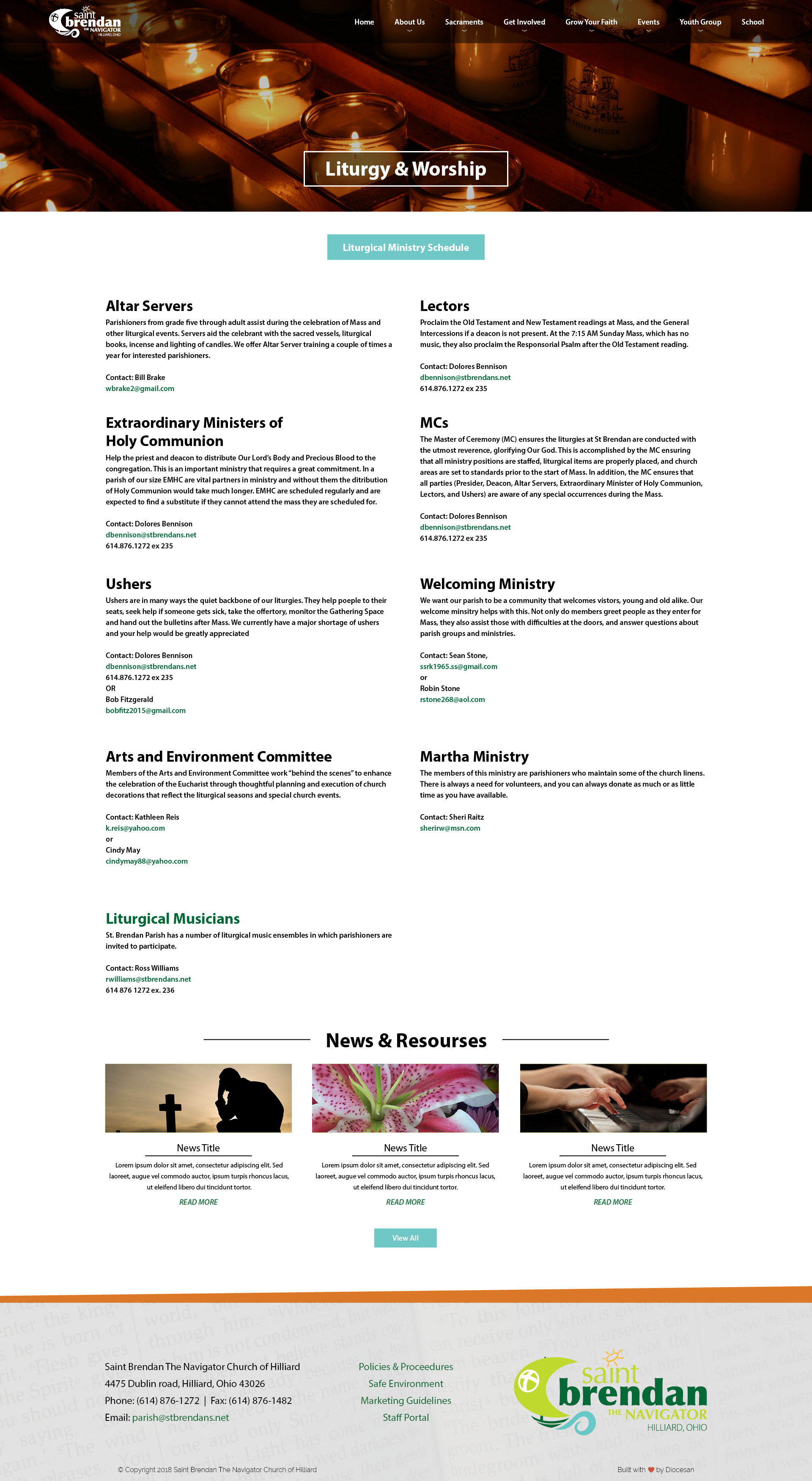 here are the updates to the pages after approval, I changed the mass times bar to blue again like you requested in the last email. If its not correct let me know!