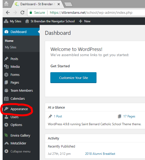 Yes, but on the school site the “appearance” tab on the left doesn’t appear like it does on the parish site, with the sub-tab of “menus.” Is there a different way to change the navigation menus on the school site than the parish site?