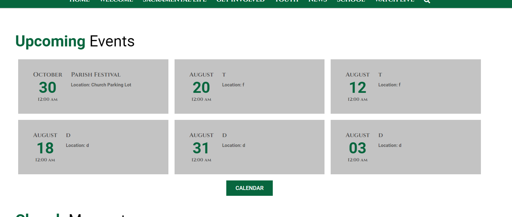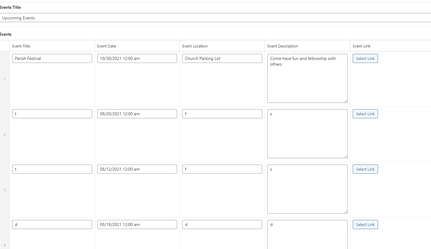 Basically, it should just be a normal simple calendar list shortcode field in the homepage editor rather than the repeater, but styled as it is currently. This is for both the Church & School. Let me know if you have a question on this.