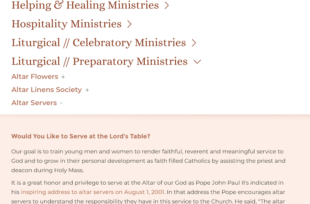 Example: https://saintbrigid.diocesanweb.org/adult-education/Should look like this: