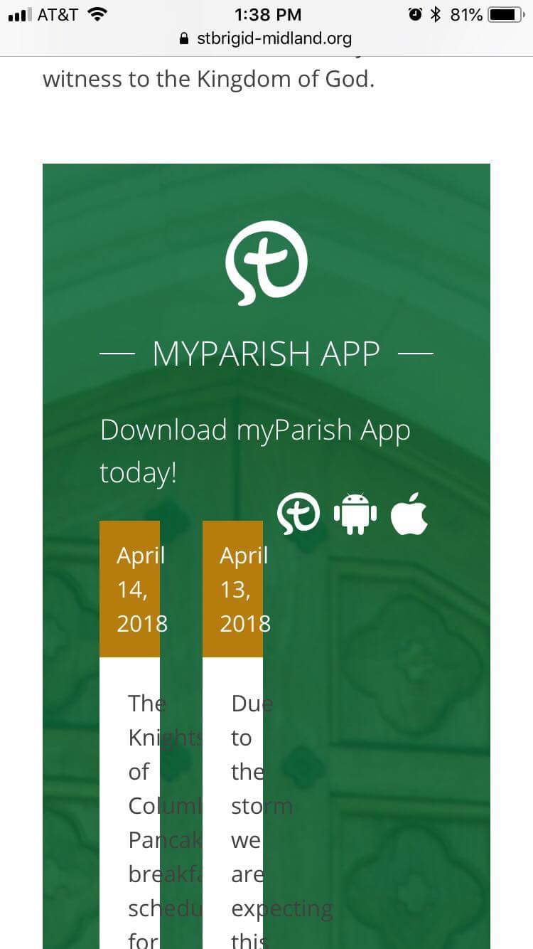 Just wanted to reach out and send you a link to the development site so you can look over things and keep track of our progress: http://stbrigid-midland.diocesanweb.com/.