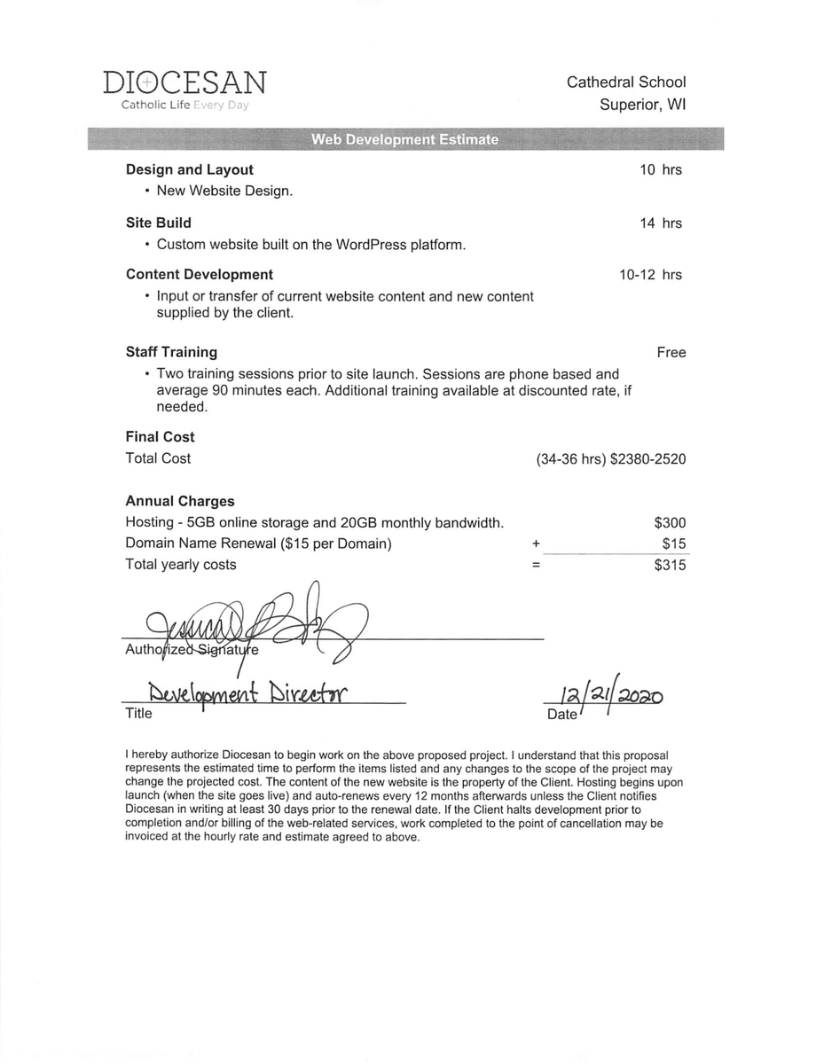 Thank you for your patience as I worked to finalize the proposal for the new school website.