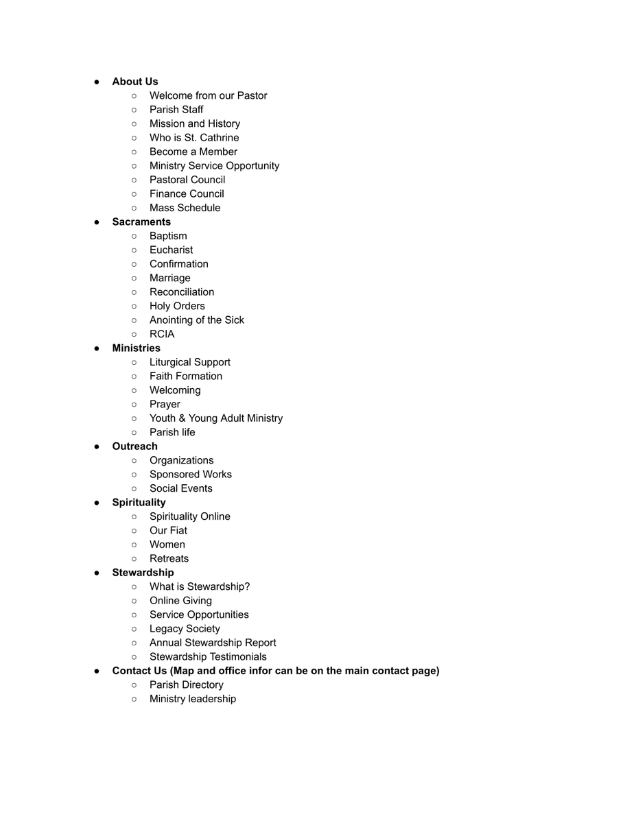 As far as the Quick Links selections at the very bottom, how about instead of Catholic News Service & FL Catholic, we use Diocese of St. Petersburg & USCCB like St. Tim’s?