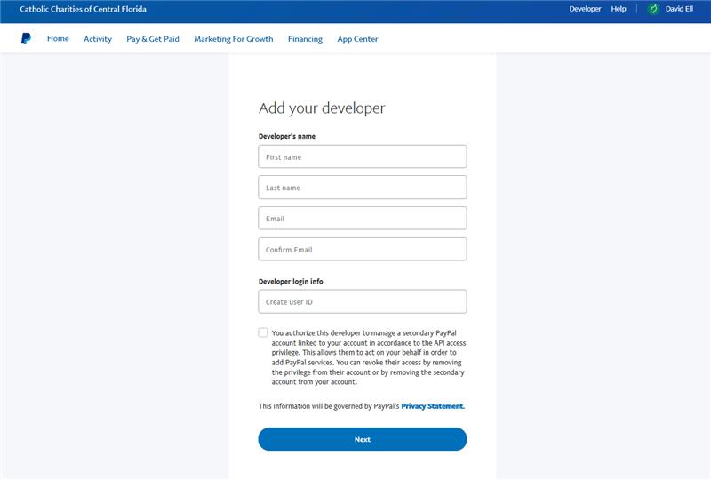 We are trying to embed a donation form from PayPal, and we need the following developer information:
