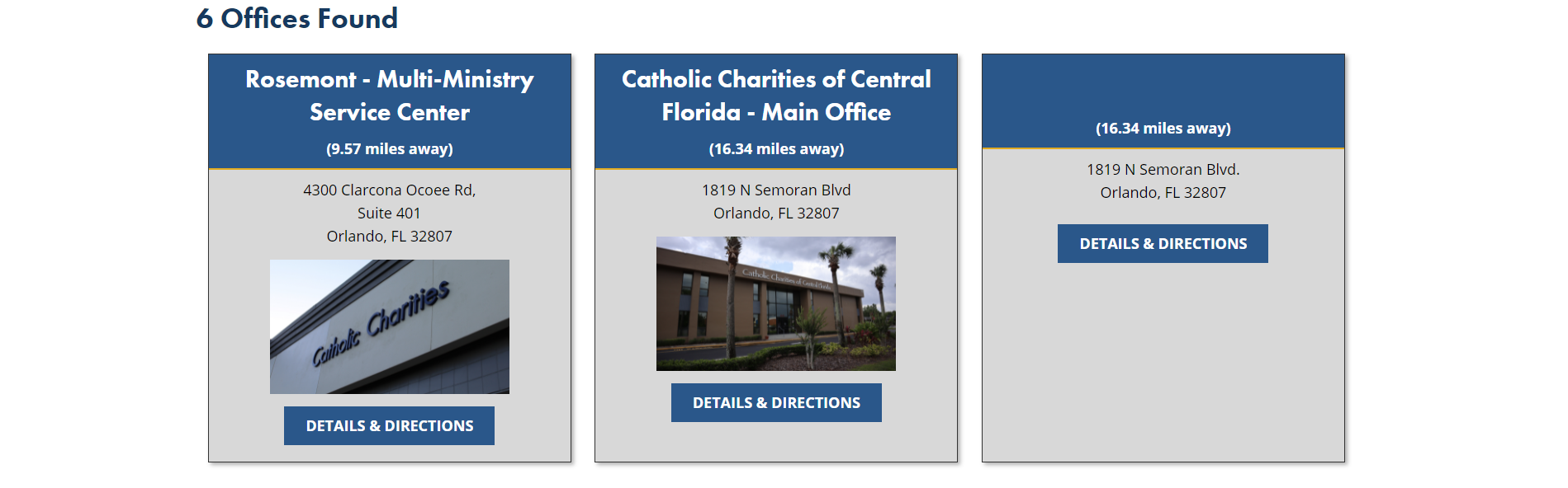If you search for food distribution (for example) using the zip code 34787, a duplicate of our main office shows up.