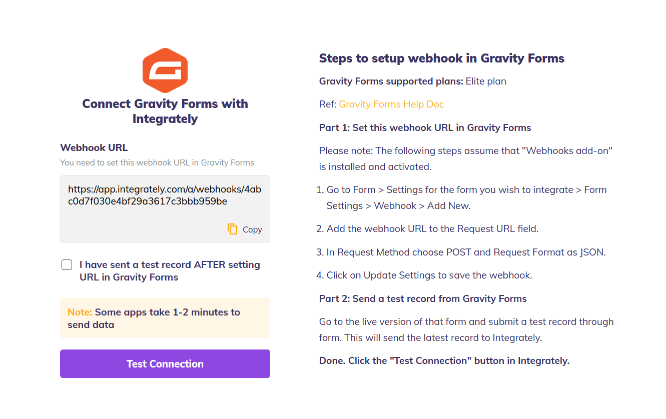 I am trying to connect our Gravity Forms with Integrately to get the info to push to Smartsheet. I was wondering if Webhook was installed? Here the directions. Not sure if this is something you have to do or not. Thanks!