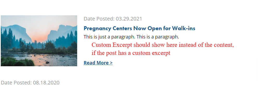 ✔ Archive - If post has custom excerpt it should show the custom excerpt rather than the content trimmed