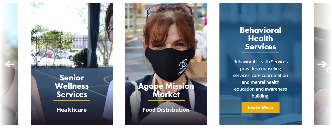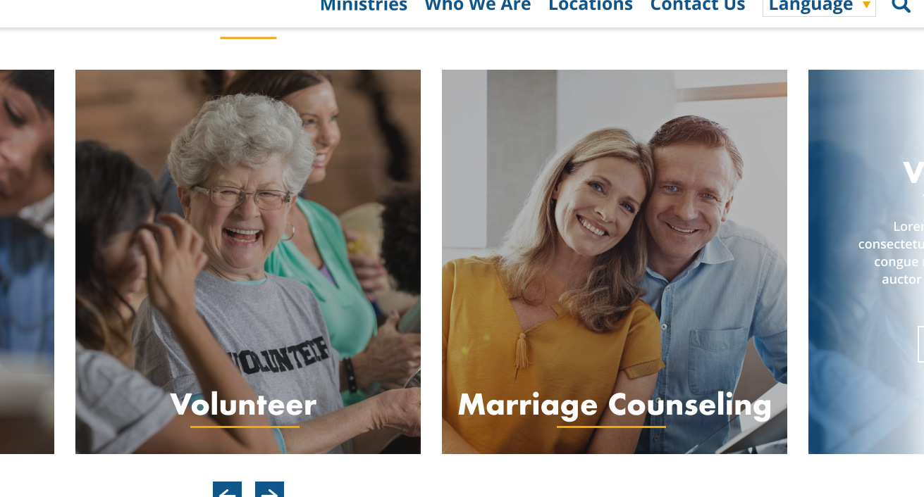 ✔ Homepage - Featured Buttons/Item (Sliding image buttons under Ministries title) Cursor arrow no longer wanted, they want it static white arrow.
