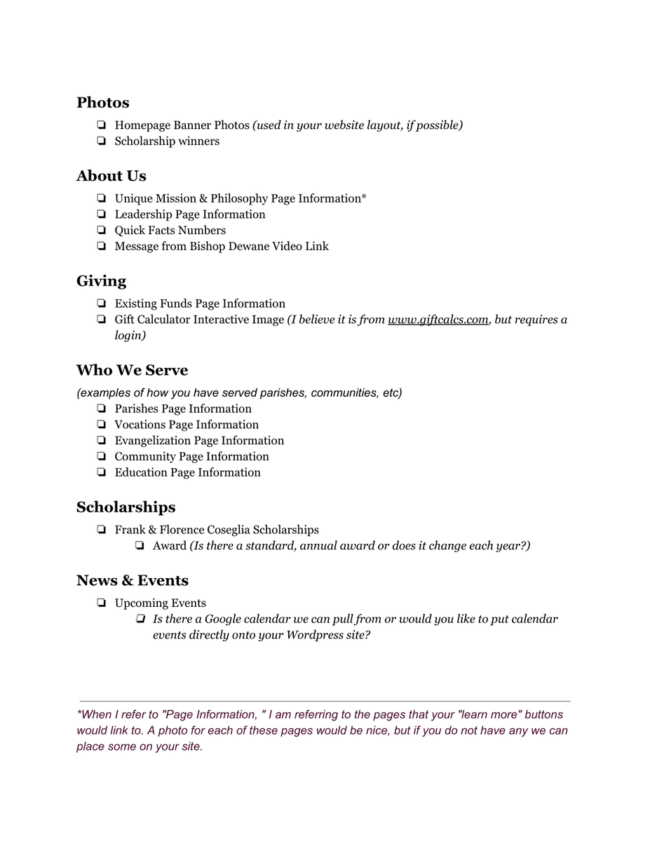 Subject: Re: Content for Catholic Community Foundation of SW Florida