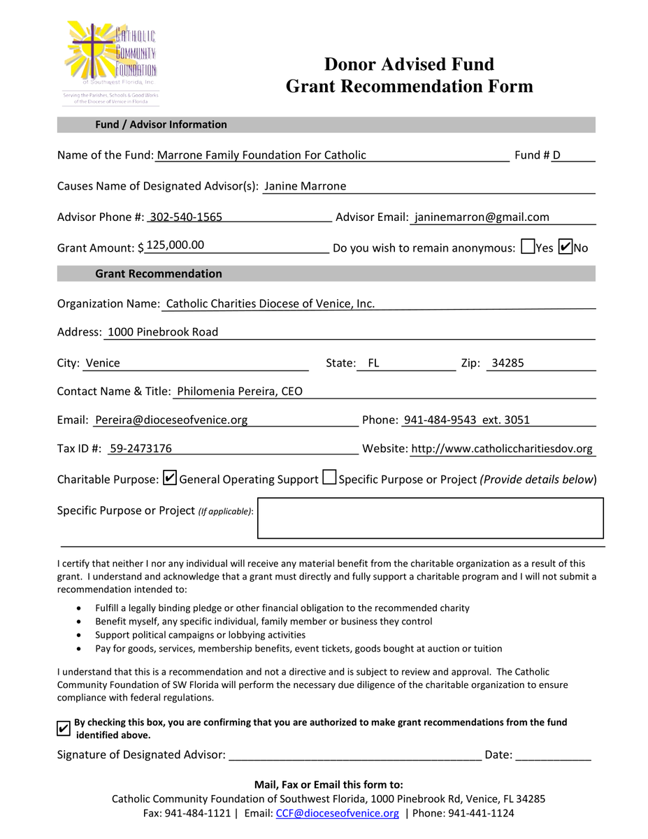 ***Official name: Catholic Community Foundation of Southwest Florida, Inc.