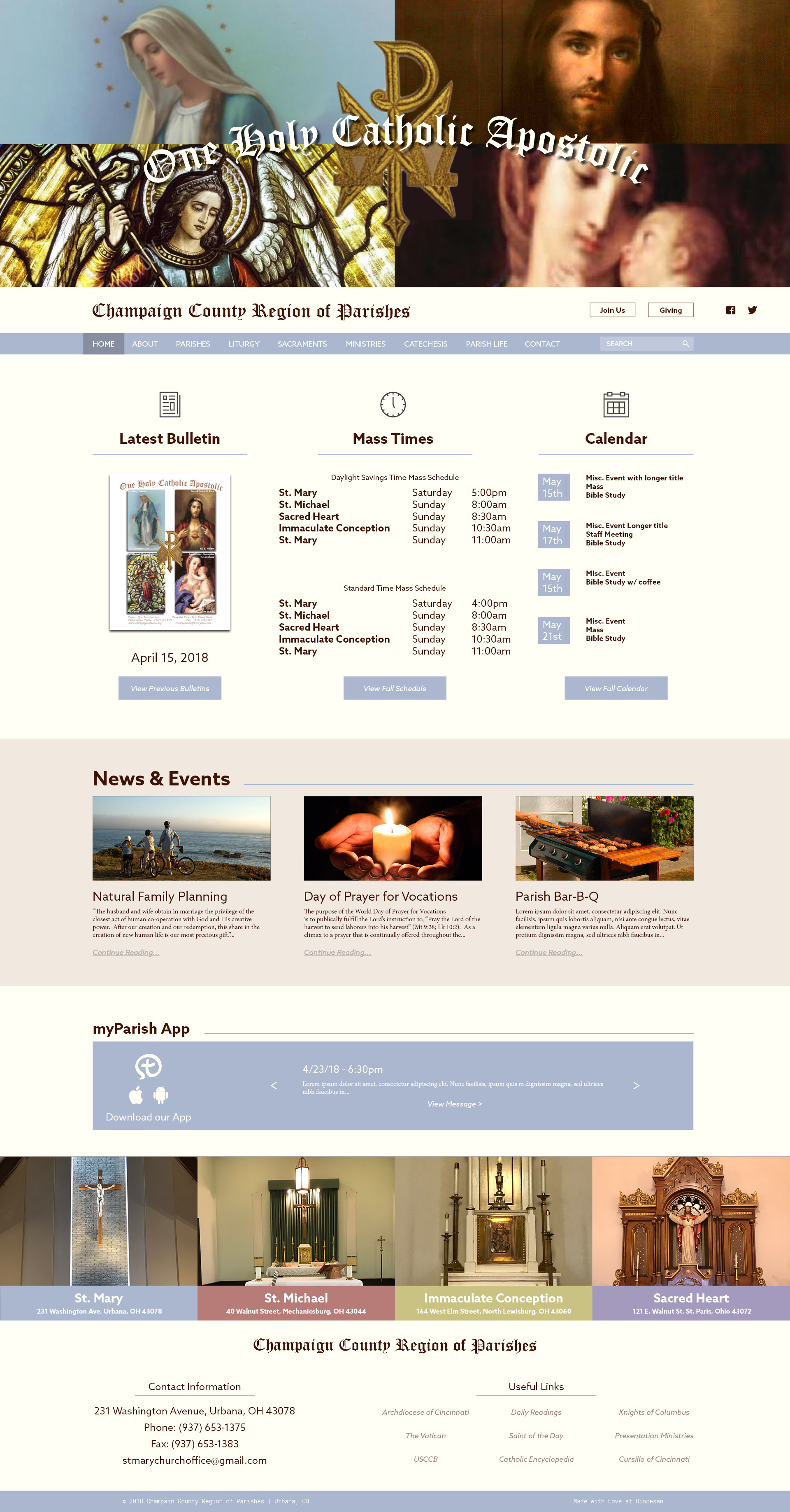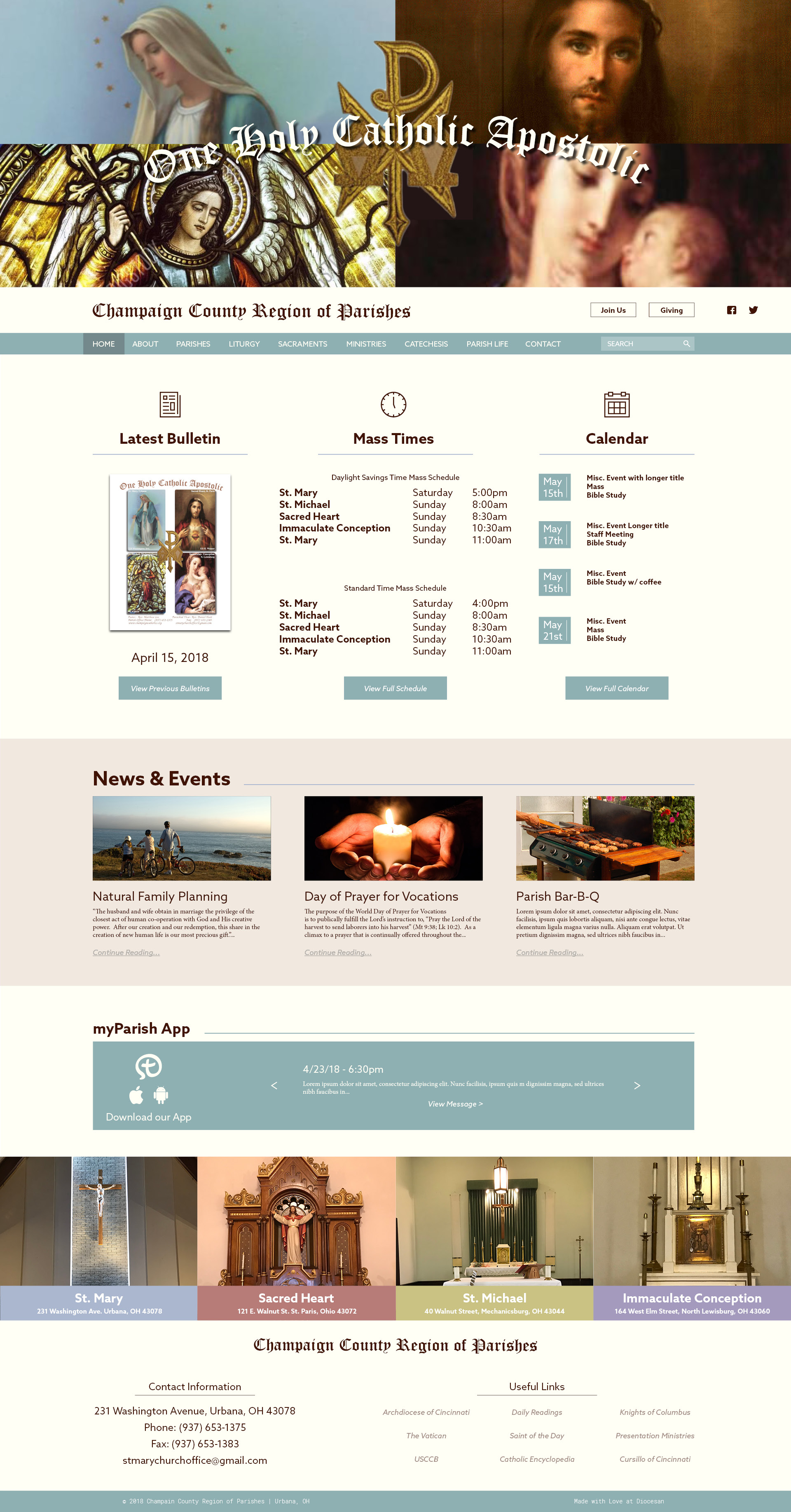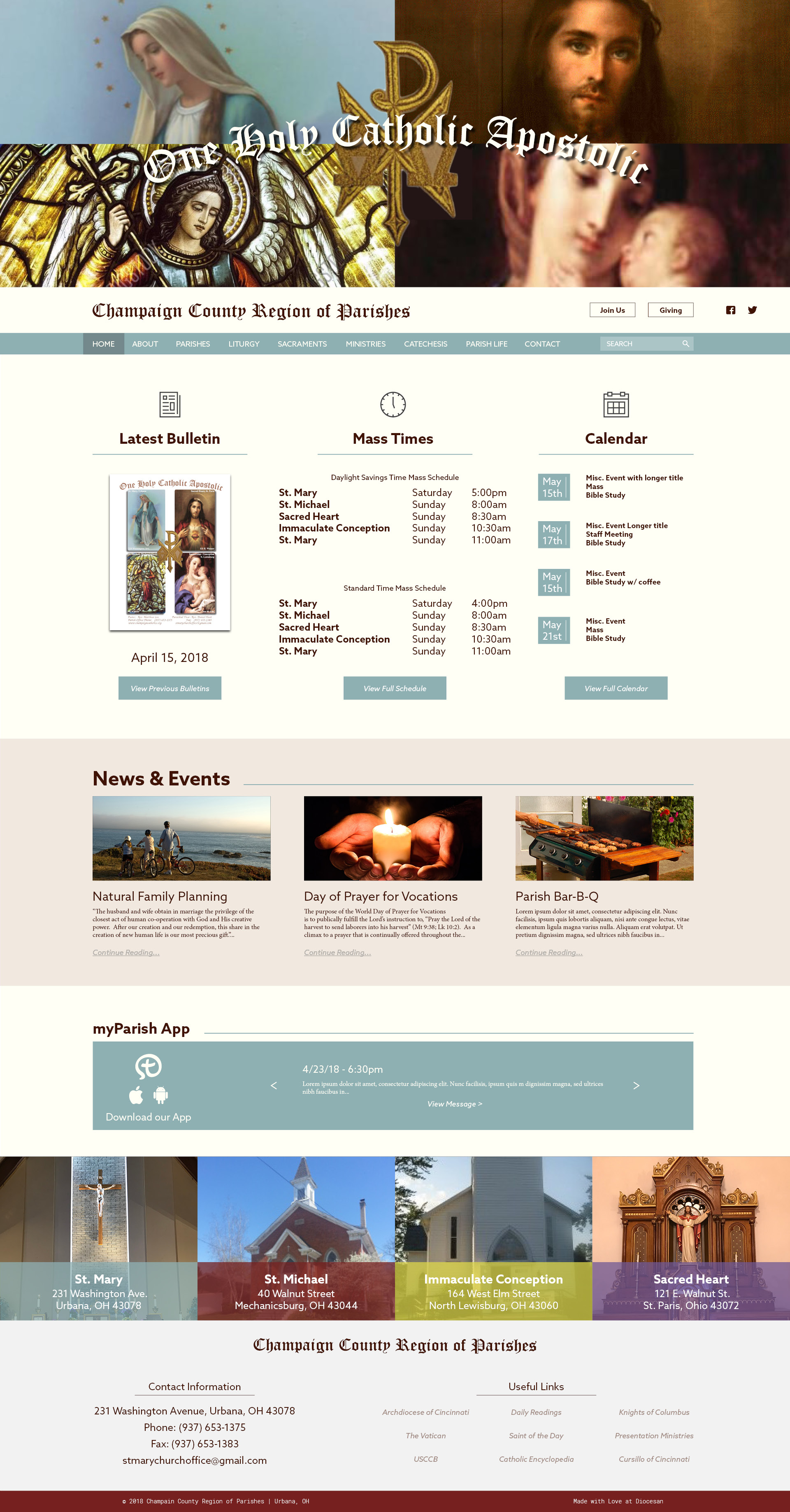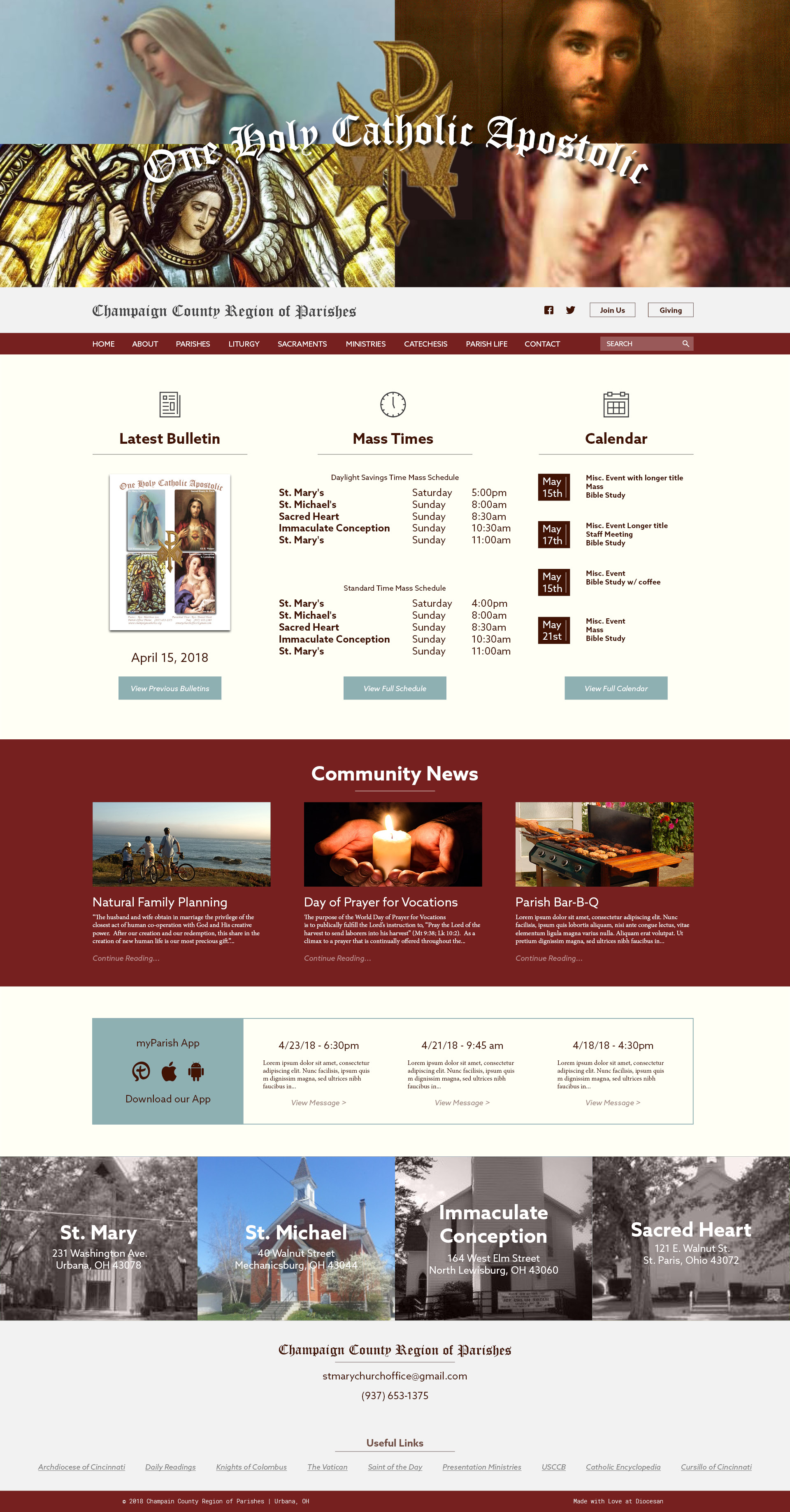 * The fourth row has the bulletin, Mass schedule, and calendar. It looks great! One item to note is that none of the parish names are possessive. It is St. Mary not St. Mary's, and St. Michael not St. Michael's.