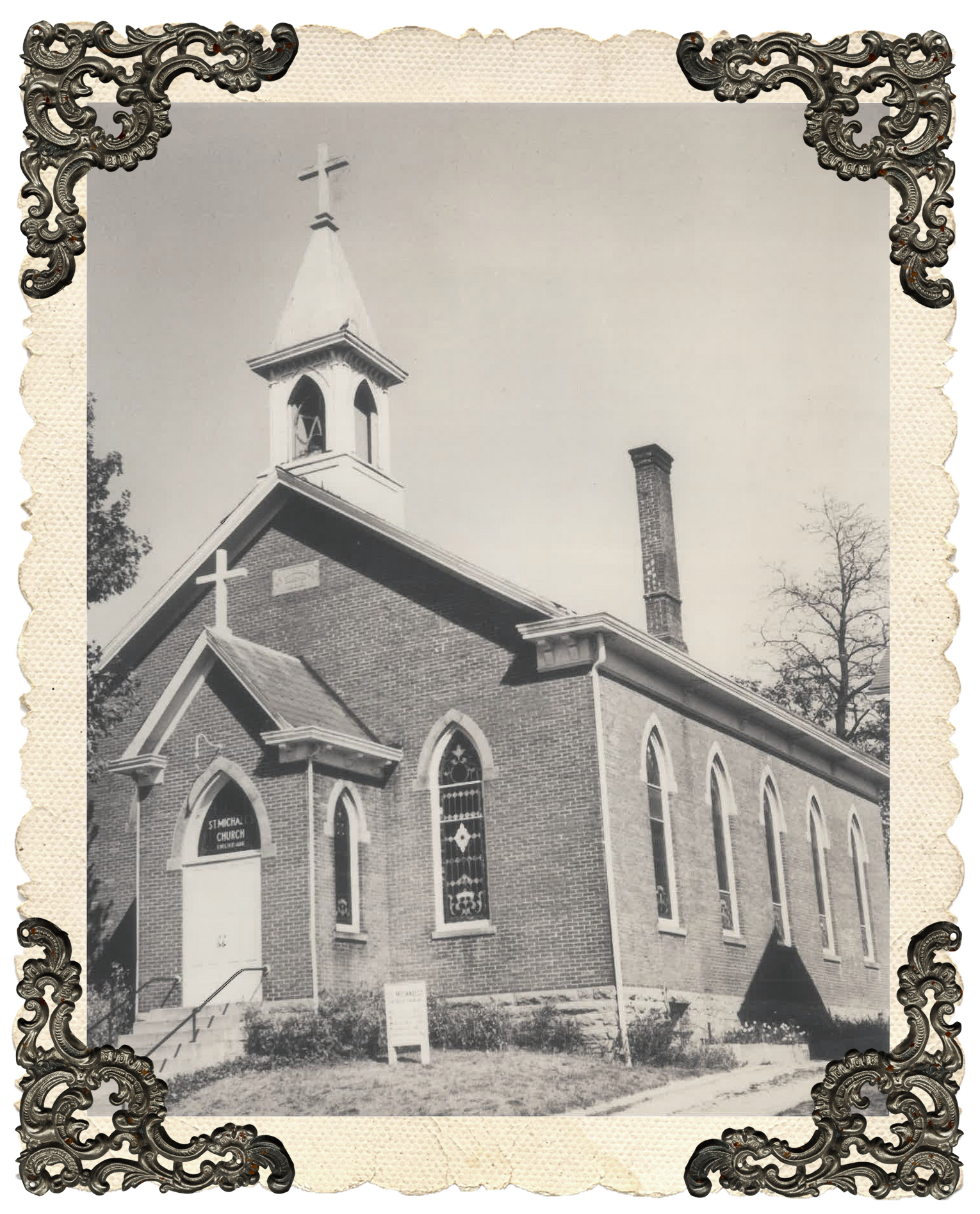 That is just because of the way I scanned it. For the web site that should be horizontal. Left to right St. Mary, Sacred Heart, St. Michael, Immaculate Conception, with the picture at the top and the physical address below.