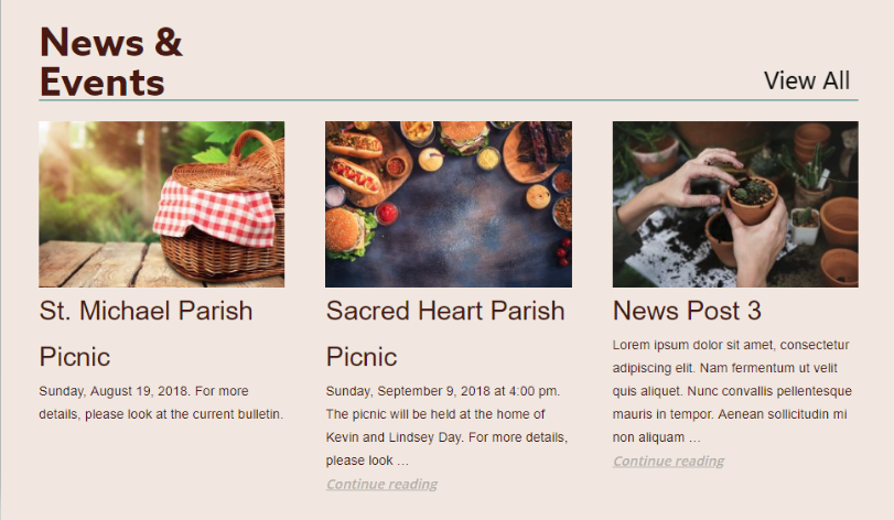 ✔ Homepage News & Events needs "View All" button (see my note below)
