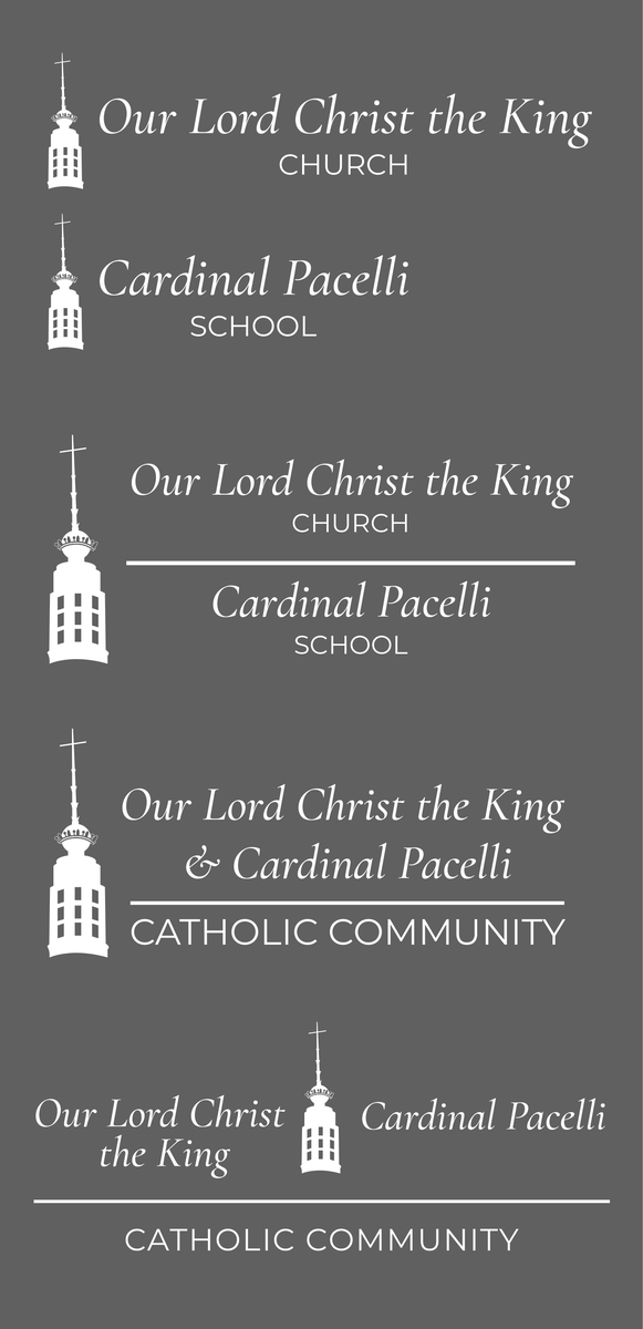 In those regards, I highly recommend "Catholic Community" for your conjoined logo. Then the school and church branding materials can state "school" or "church" accordingly. The public will recognize the same icon and understand they are related.