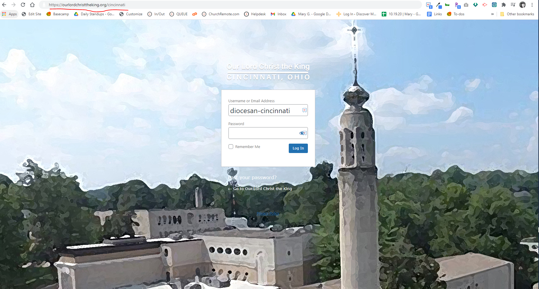 When you need to edit the site, you'd then go to login at https://ourlordchristtheking.org/cincinnati as that's the login page for the church website.