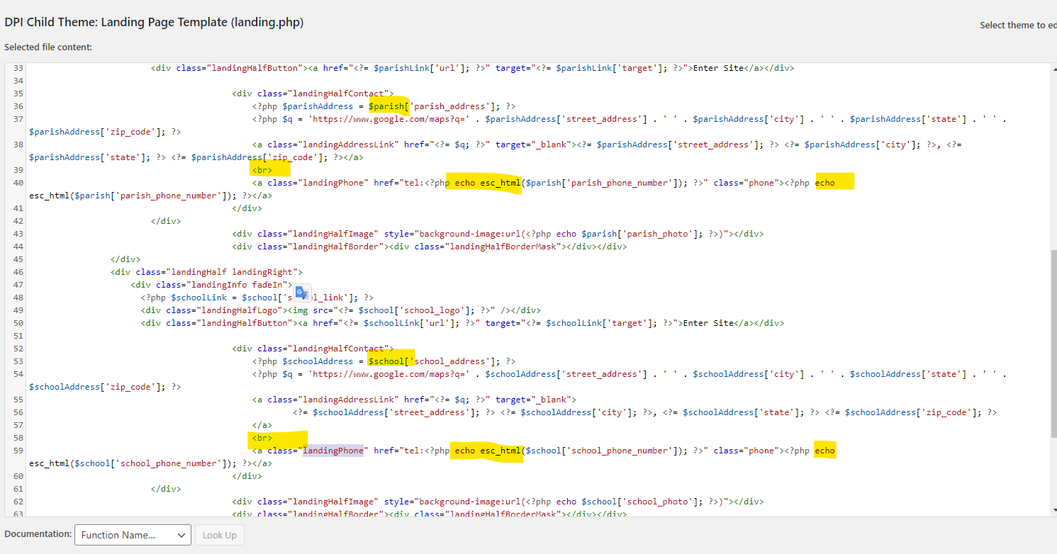 ✔ I redid the landing page.php in the child theme, so redownload it. The address and phone numbers were not showing on the old one