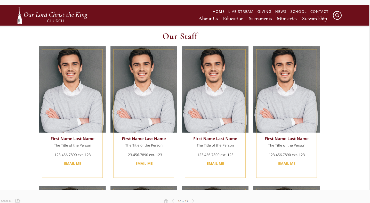 From the list: Build ✔ Staff Page - is different than St. James Cody A. added this on Dec 16, 2020 Completed Dec 17, 2020 by Kyle B. Assigned to Kyle B. Notes https://xd.adobe.com/view/6ecfe0ac-e1f9-4500-a037-8e119d0f0fbc-3b9c/screen/71ba8e38-f033-41fd-8337-f6e60f9ca40c/https://christtheking.diocesanweb.org/staff/ image.png 1.4 MB • Download image.png 816 KB • Download Comments & Events Kyle Brown completed this to-do. Dec 17, 2020 at 7:40 PM