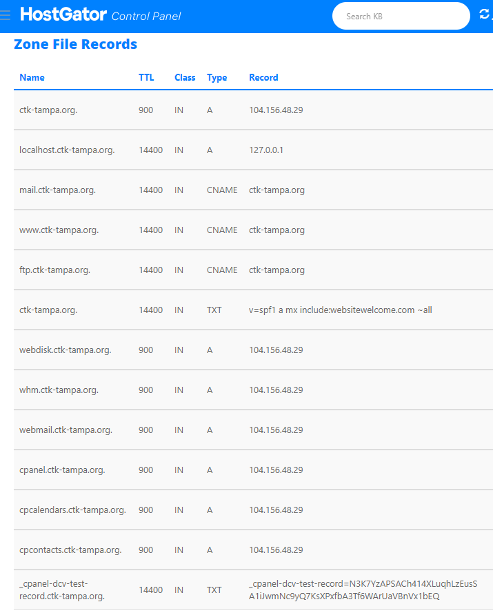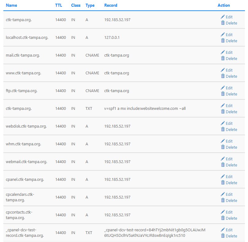 To facilitate the transition, all you will need to do is update two host records for http://www.ctk-tampa.org/. Updating the domain name will point the site to the new server. You will need to make the following changes to your domain name host records: