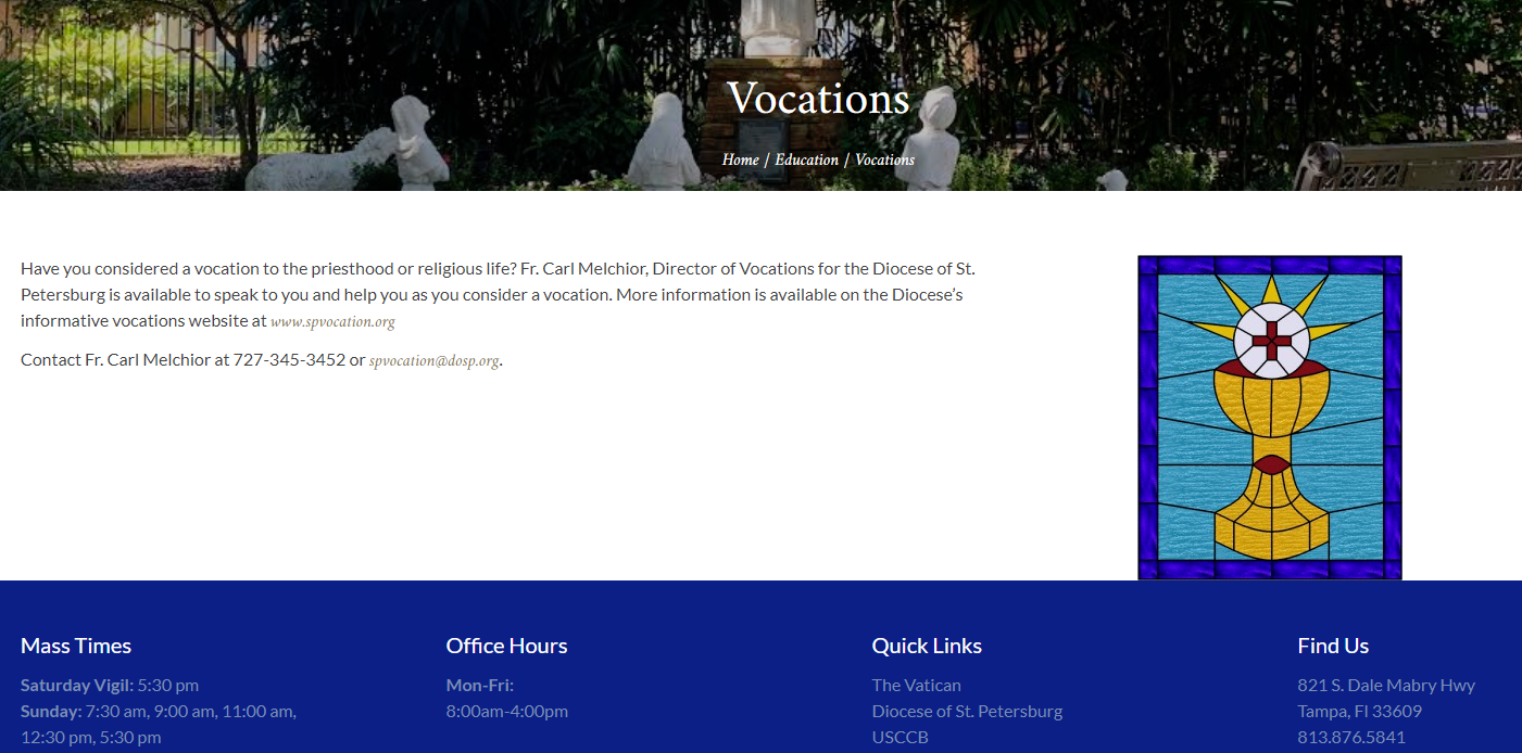 From the list: Build ✔ Need padding between blue footer section and white content section Mary G. added this on Jan 26, 2019 Completed Feb 14, 2019 by Kyle B. Assigned to Kyle B. Notes Example at: http://ctk-tampa.diocesanweb.org/education/vocations/ image.png 720 KB • Download Comments & Events Kyle Brown completed this to-do. Feb 14, 2019 at 6:19 PM