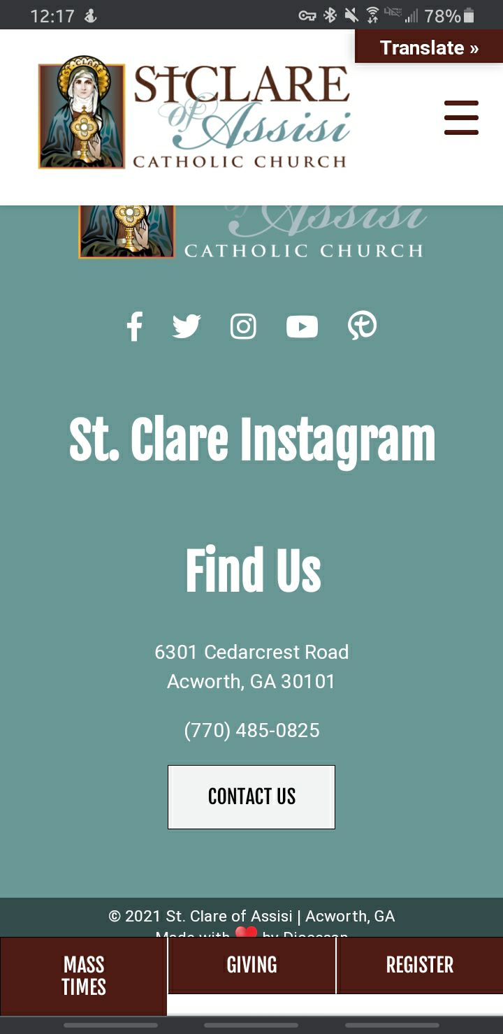 Giving and Register don't go all the way to the bottom because of two lines and they should go lower than the Diocesan site info.