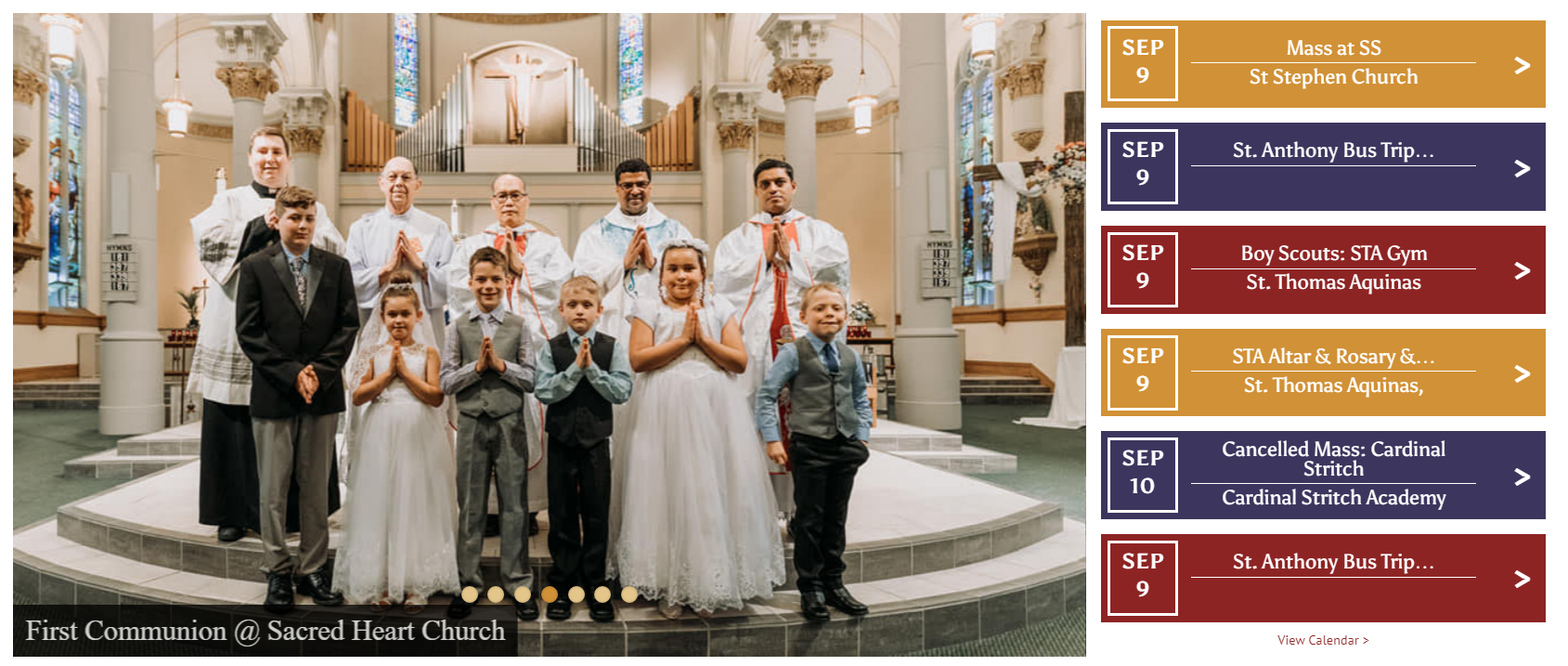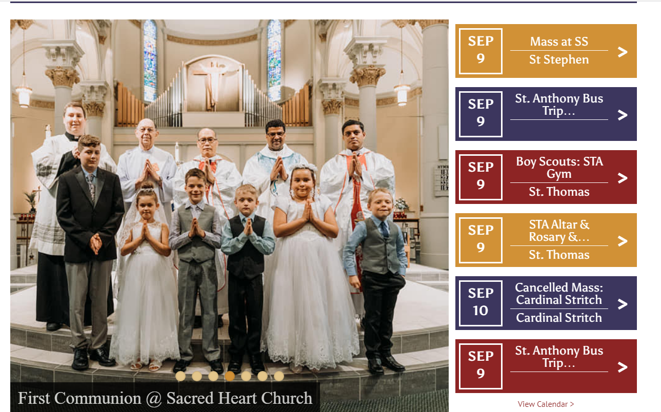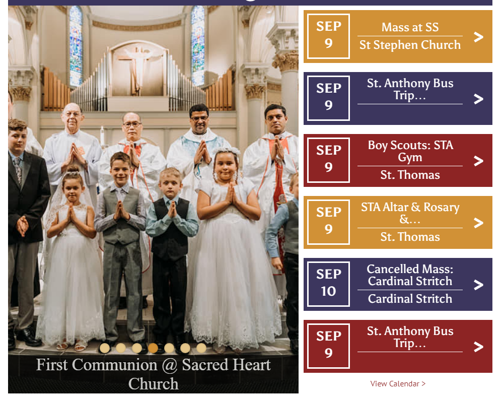 Be sure to talk with them about how the image slider on the homepage will not be a fixed size. If they want fixed size, then the calendar events on the right will begin to shrink and shorten the events. If they want it to be specific ratio until the stacking breakpoint, be sure to make a to-do for it under build so the developer knows to build it that way rather than going back and fixing it after