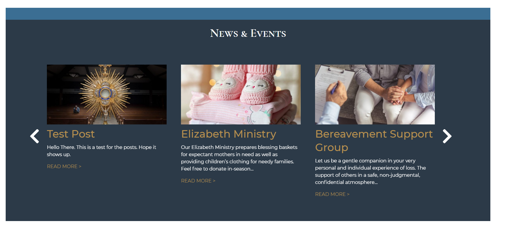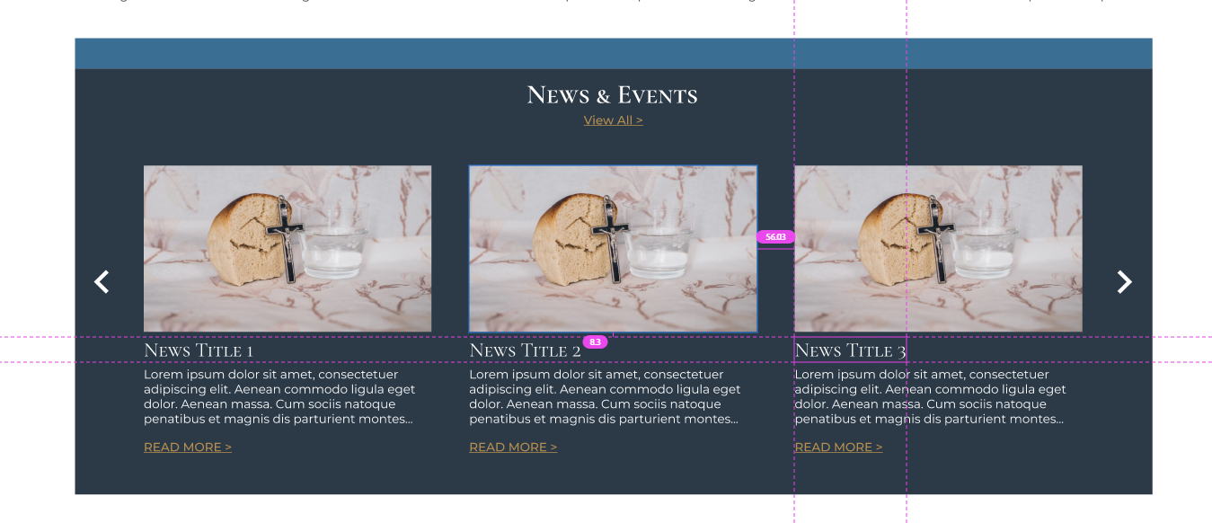 ✔ Homepage - News & Events Section - Style out the News Section, View All link is there but invisible, read more links, title size, etc.