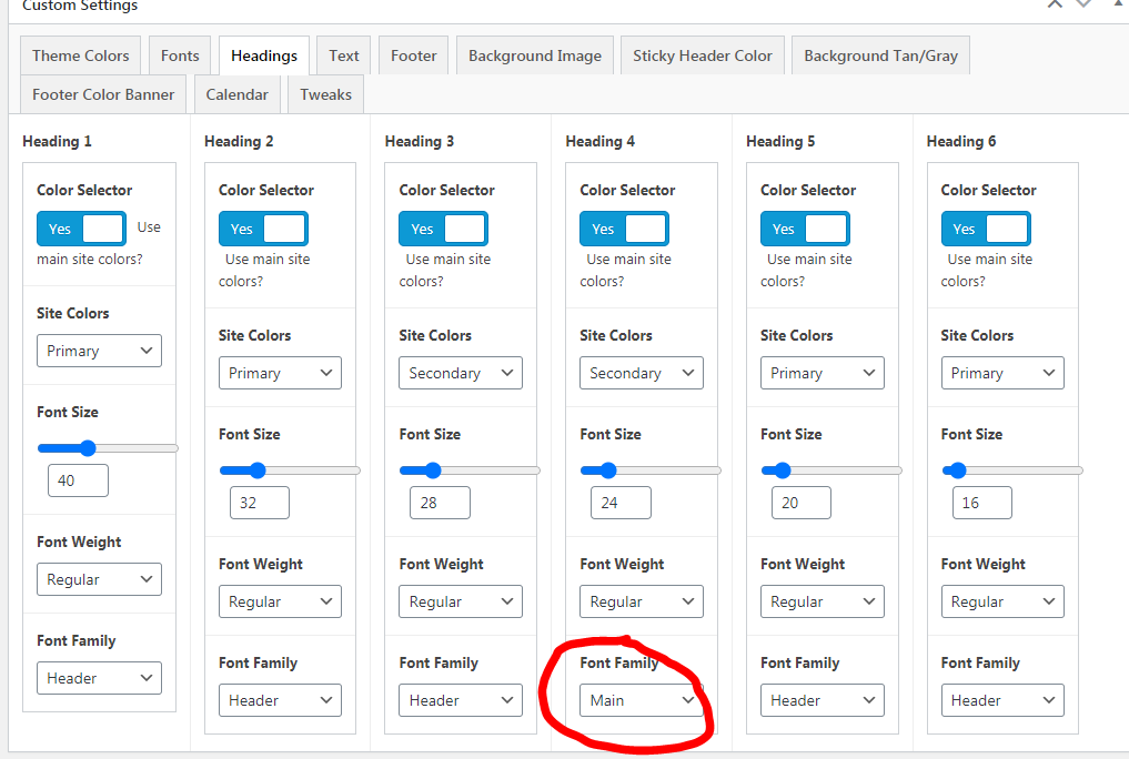 You can change h4 to the nonheader font family. This was the setting for https://divinazareth.diocesanweb.org/