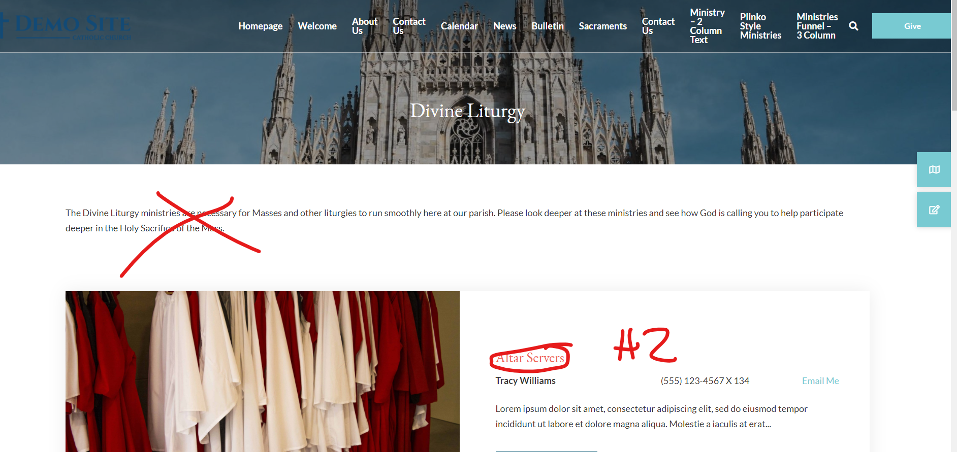 ✔ Ministry Group - No group description at the top of the page and Change Heading/Ministry Title to Heading 2