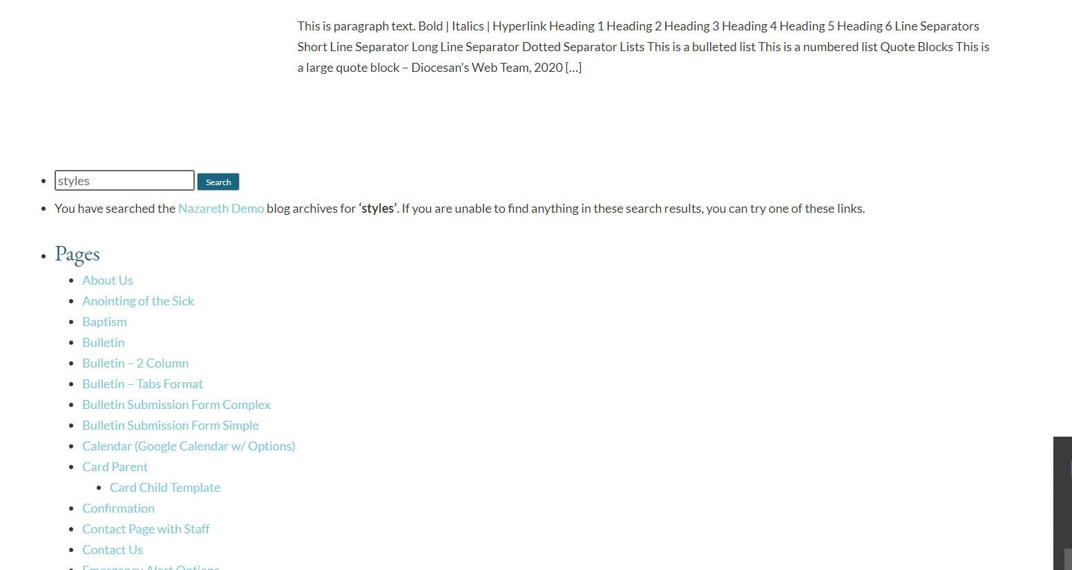 ✔ Search page - Not found/ found Remove the extra bit at the bottom that has list of pages