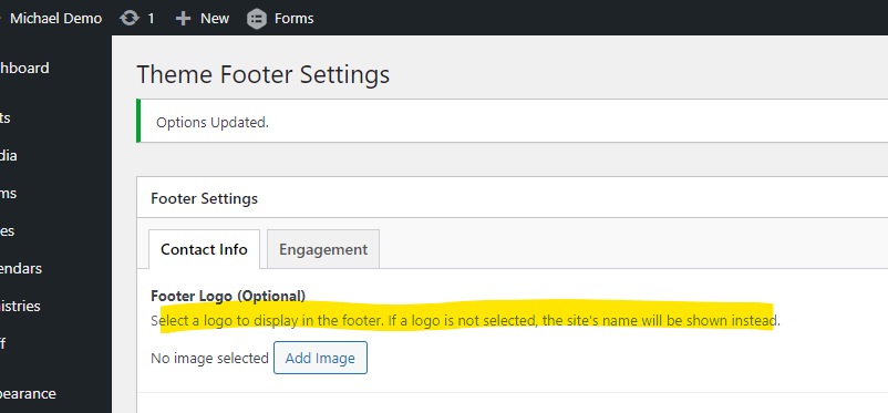 ✔ Theme Footer Settings - Footer Logo is always shown, description lies.
