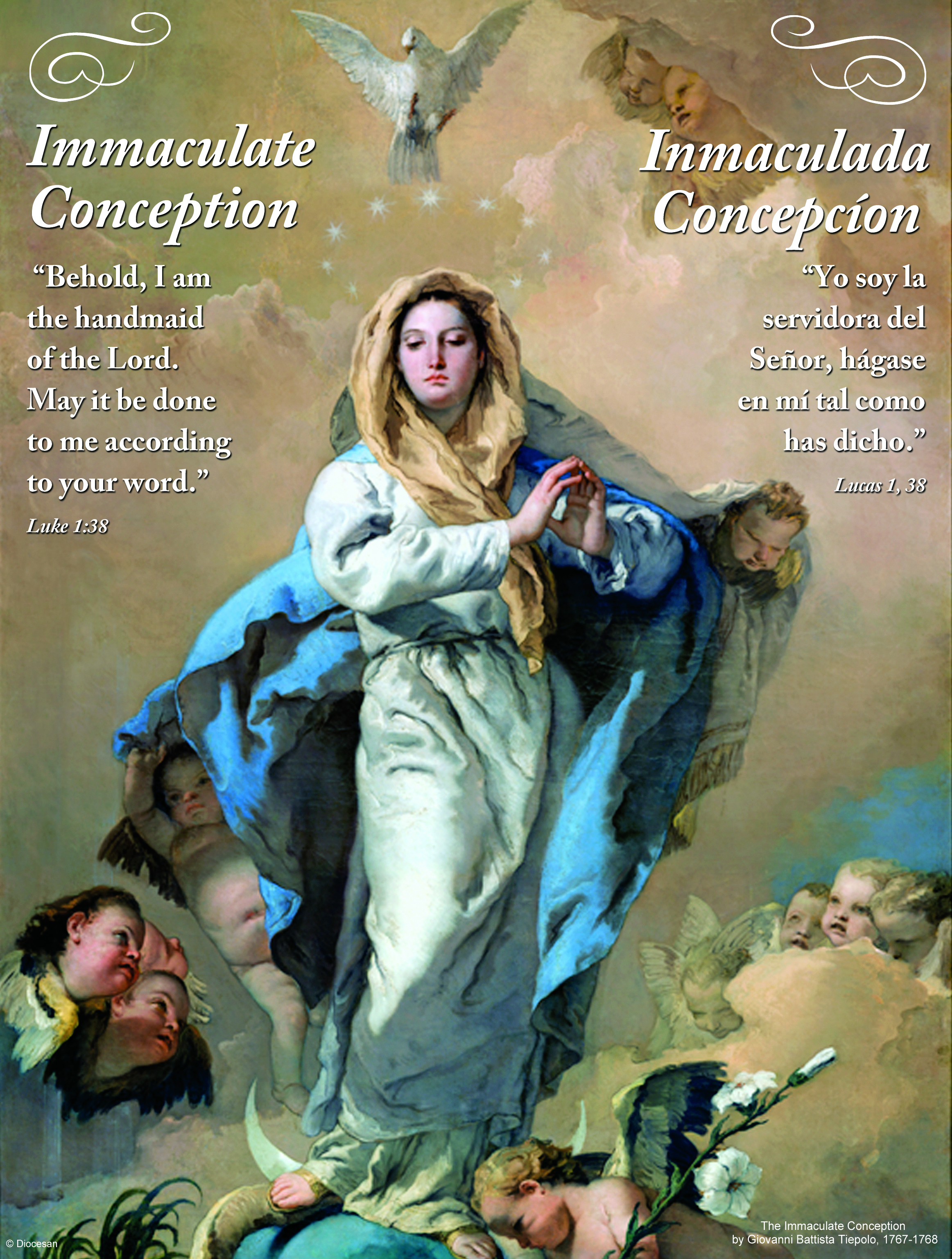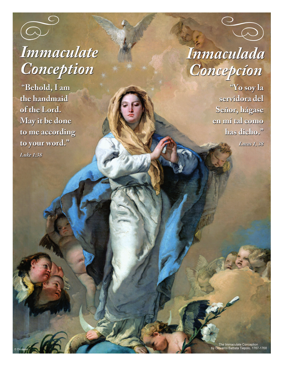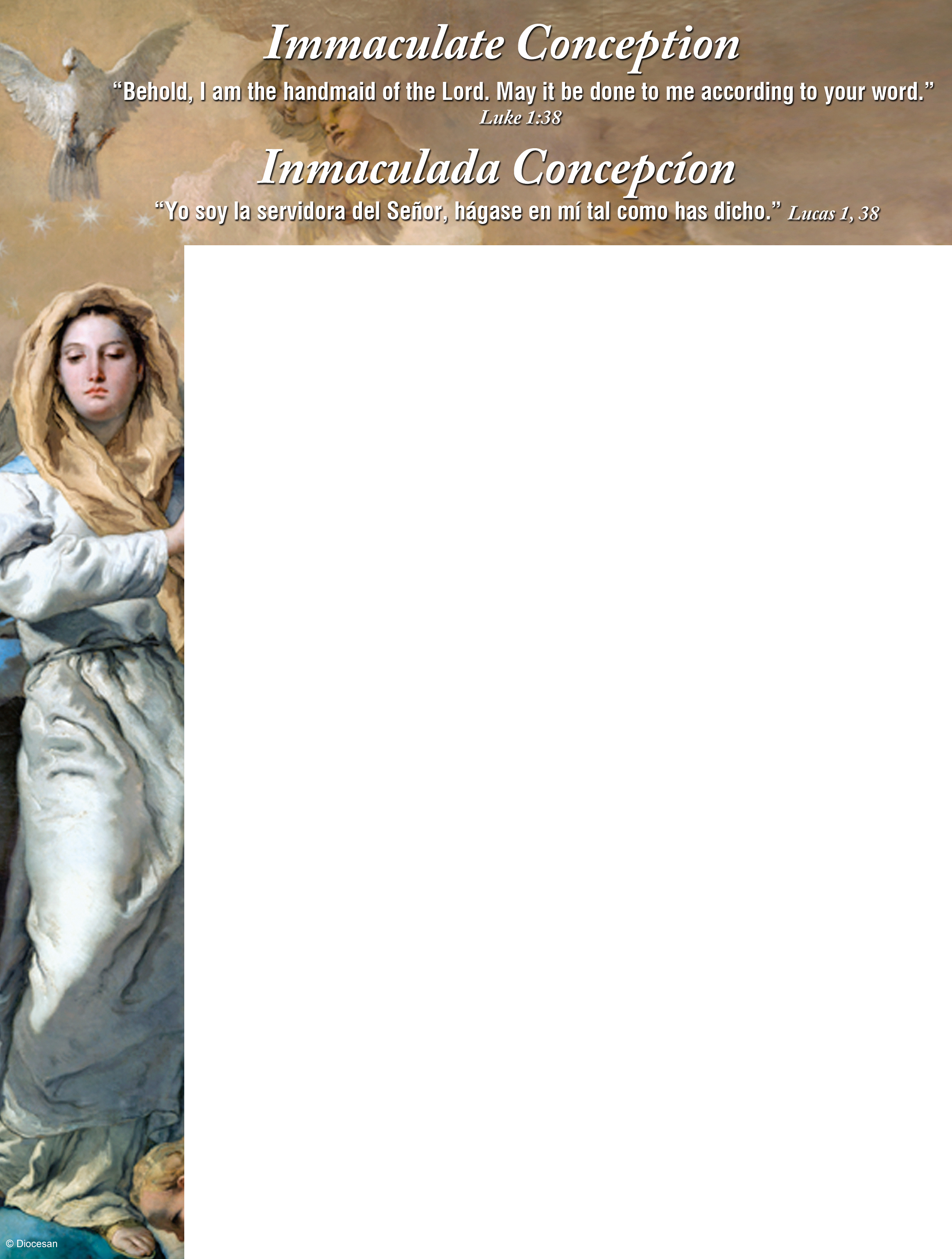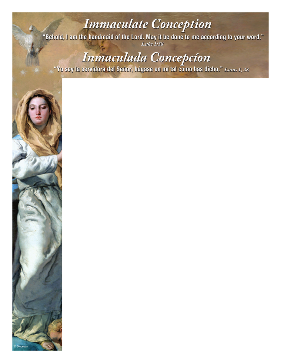 Tried it, did not look good as the Spanish verse is shorter than the English verse, and the swirly things clashed with the Mary image