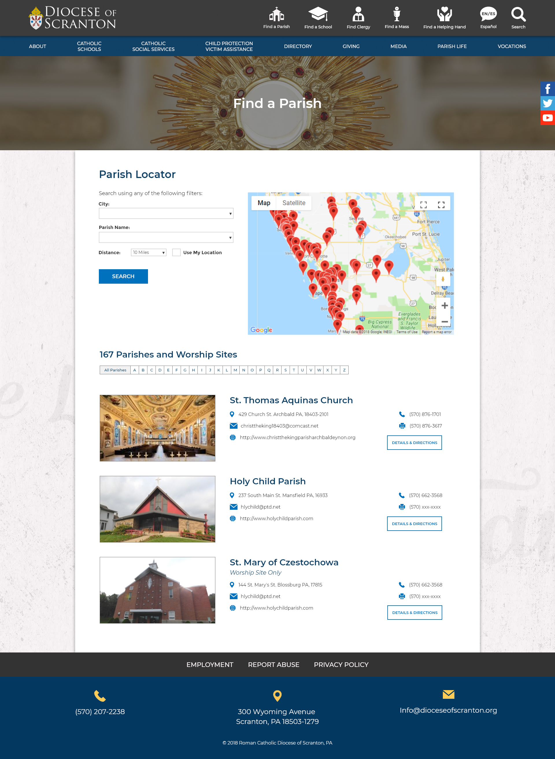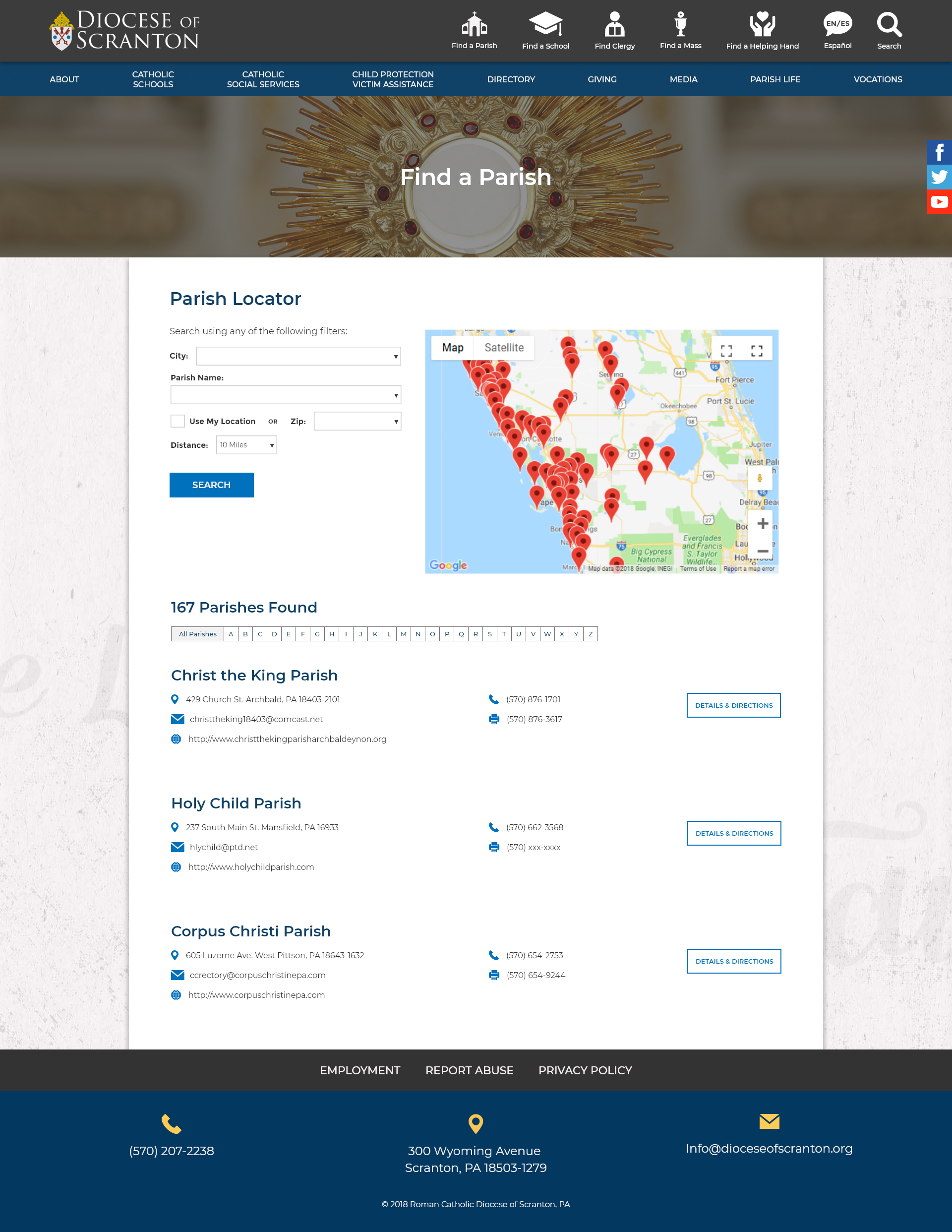 Got it on the zipcode. As far as the list of consolidated parishes, are you saying you want it on the Find a Parish page?