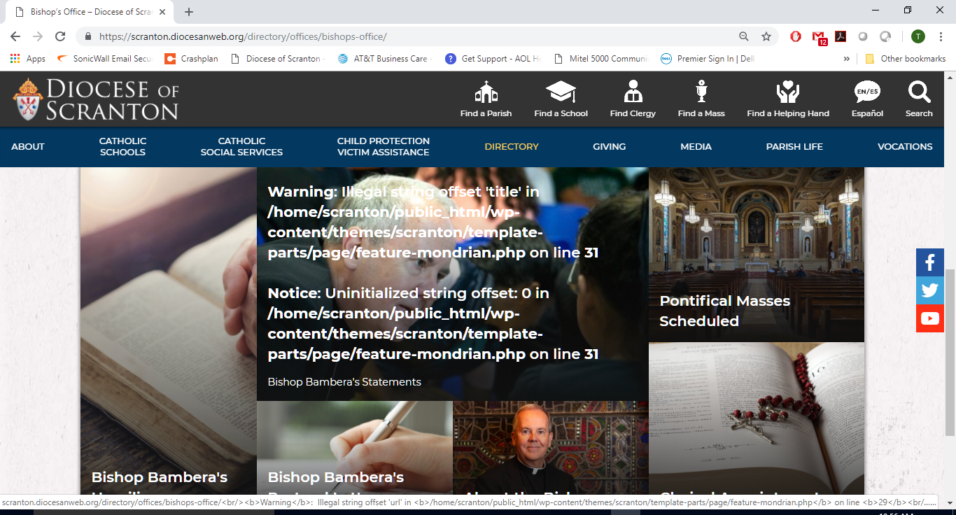 Error on Bishop's office page tile