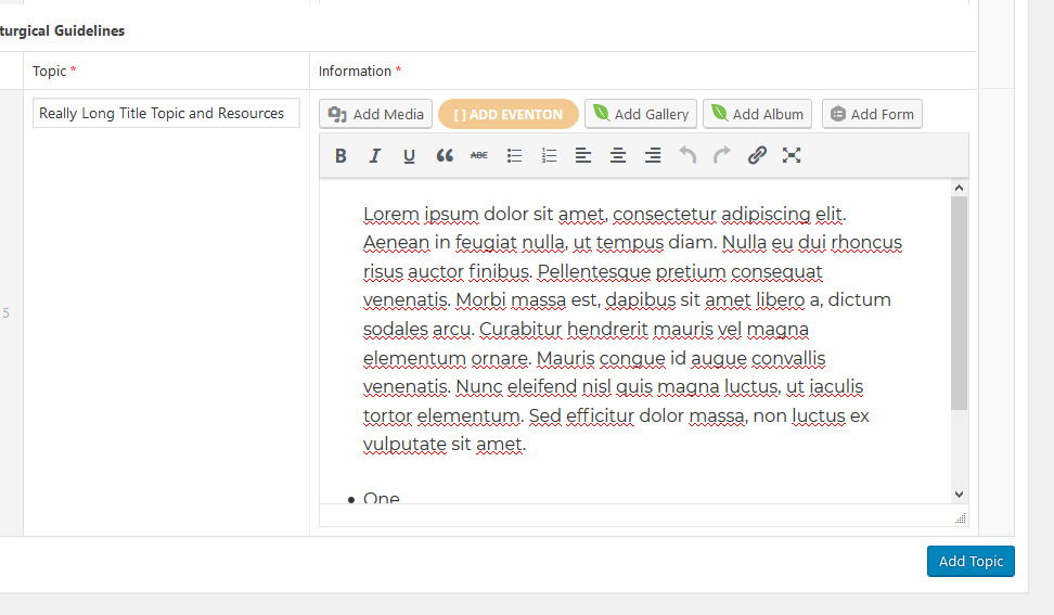 I've set it up so that the anchors and rolodex functional are generated automatically based on the data provided. Order does not matter. I've taken a snippet here of the Topic & Information fields, which are all that need to be filled out.
