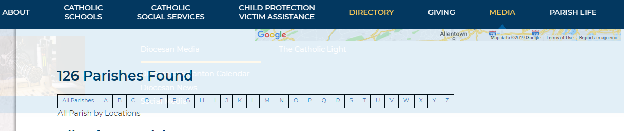 For the record, this was the original to-do: Find a Parish - Add Text for alphabetical search "All Parish by Locations" - Diocese of Scranton