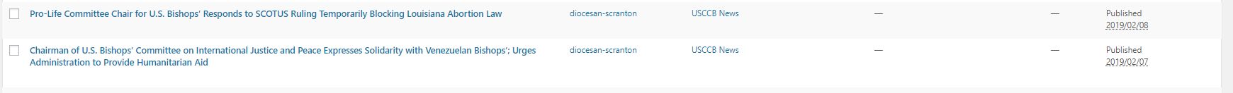 However, 10 USCCB posts are showing on the page, despite the fact that I only published 2 of the posts. The two that I published are showing up first, then a whole bunch of older posts from January, and December, that I had previously deleted!