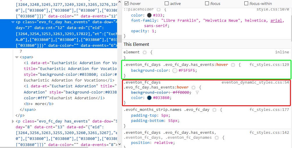 I went ahead and applied the #333 dark gray to the Custom Styles (Styles tab). I venture to guess there's going to be a few more tweaks to the calendars, so just let me know what you need.