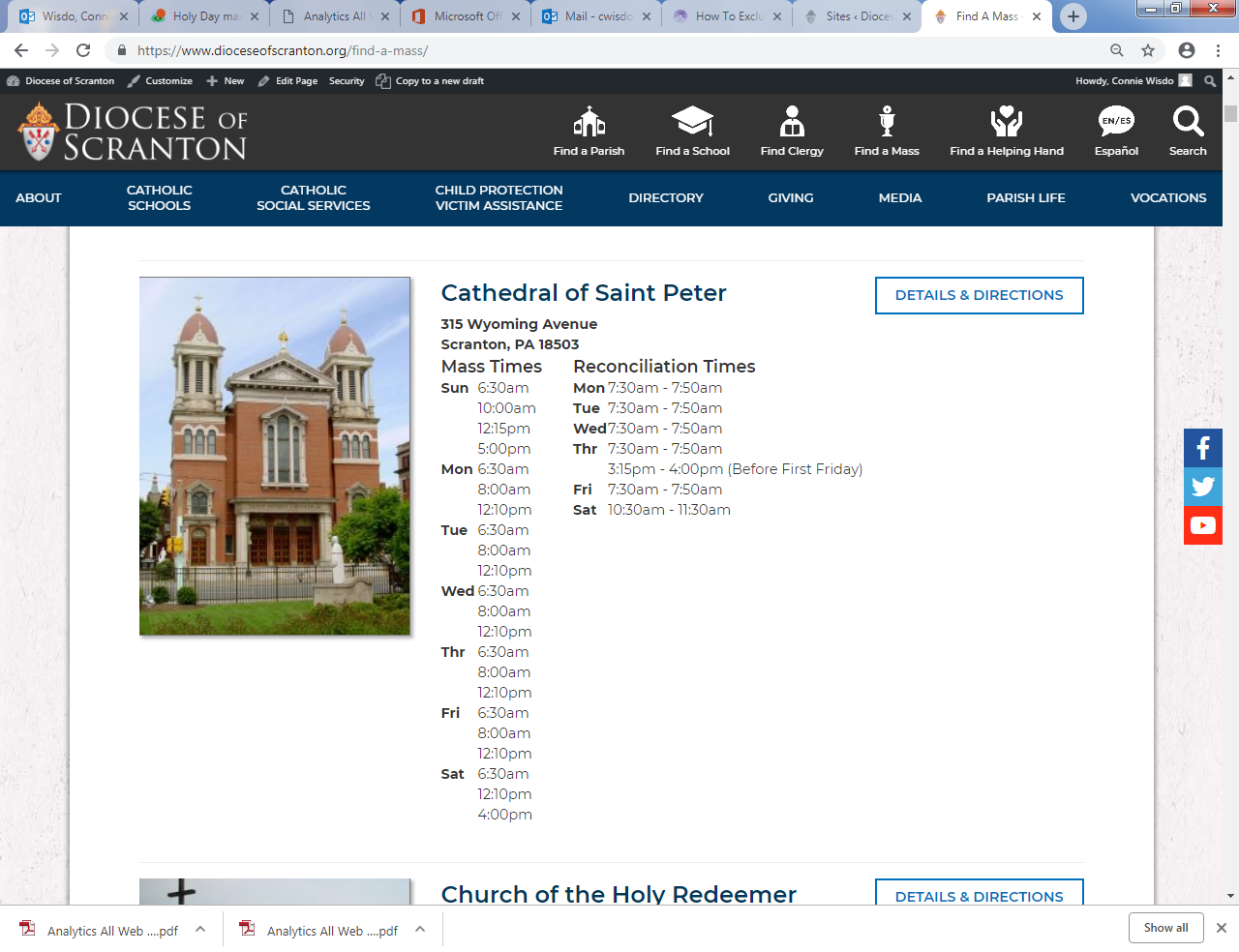 We are not seeing any Holy Days or Adoration times on https://www.dioceseofscranton.org/find-a-mass/