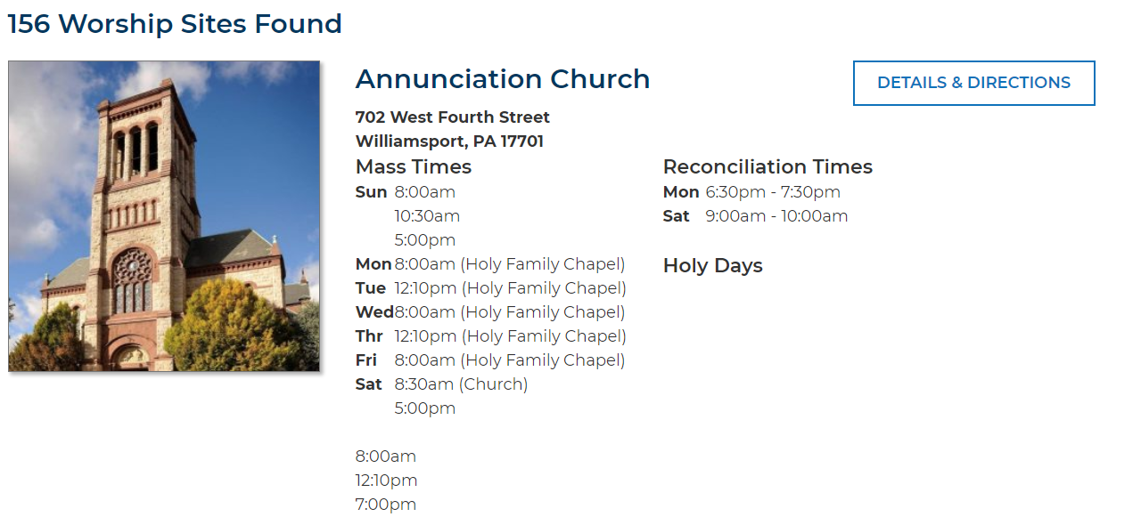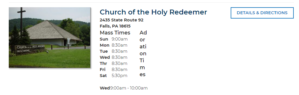 And here’s an example of Adoration Times display gone wrong on the Church of the Holy Redeemer display on https://www.dioceseofscranton.org/find-a-mass/
