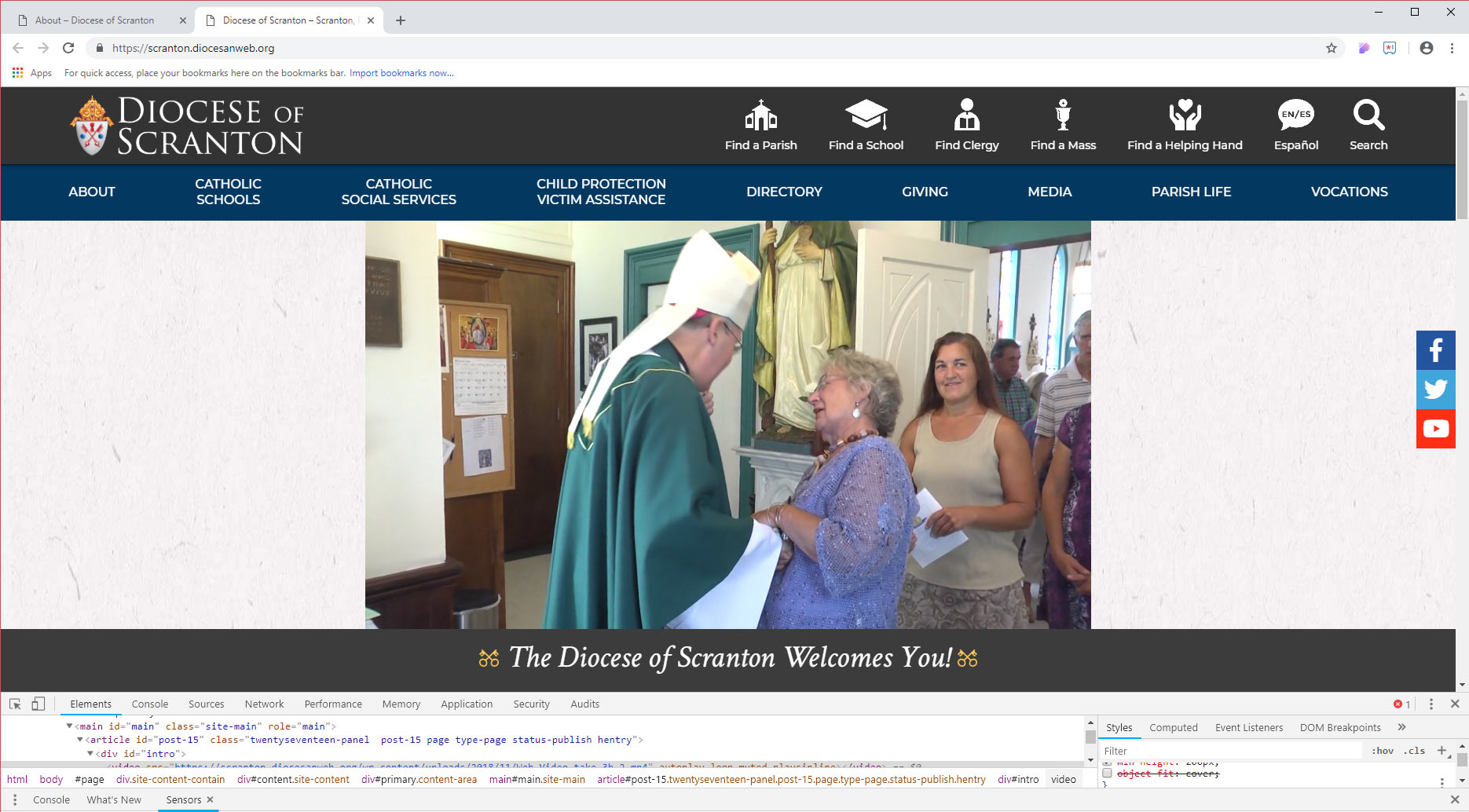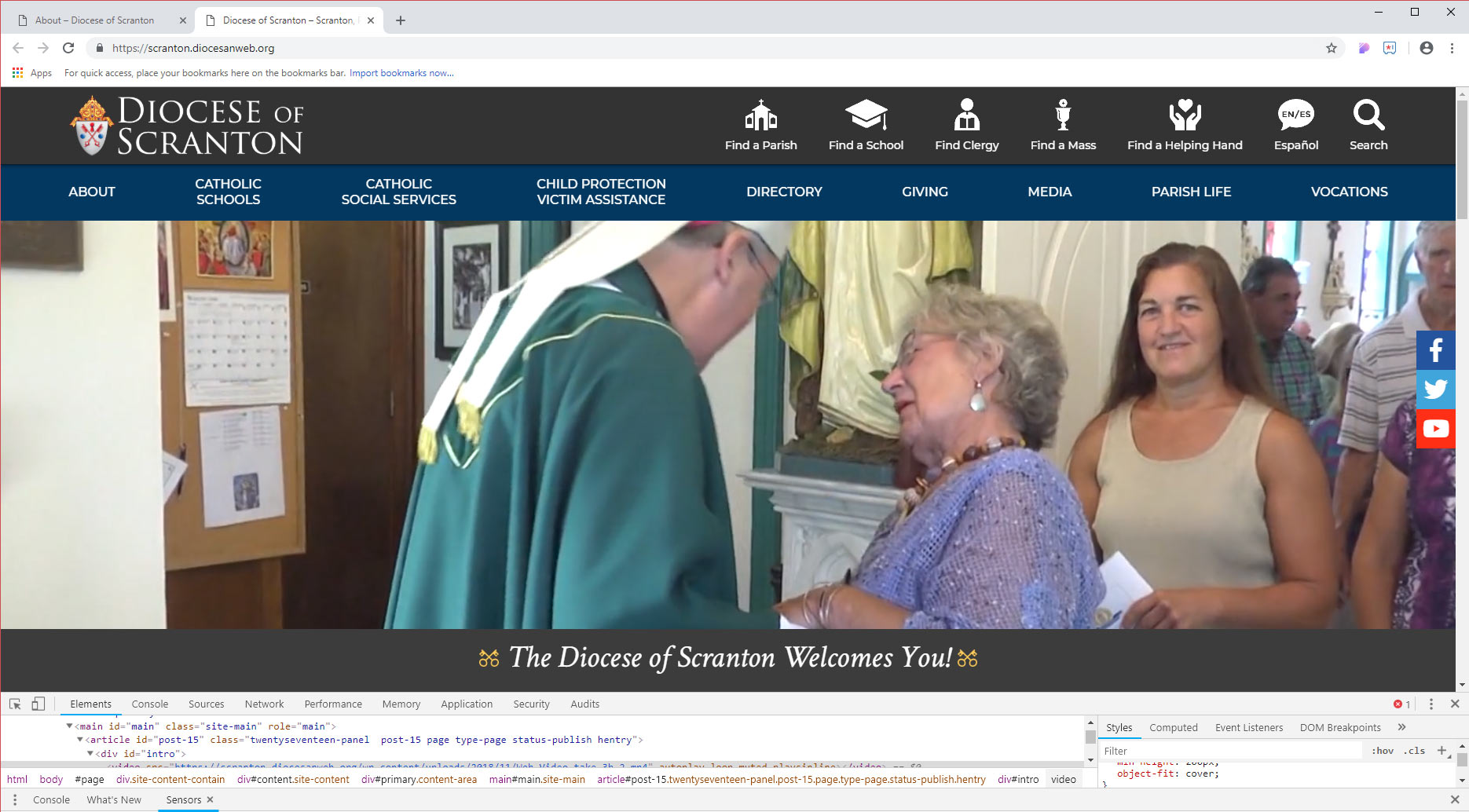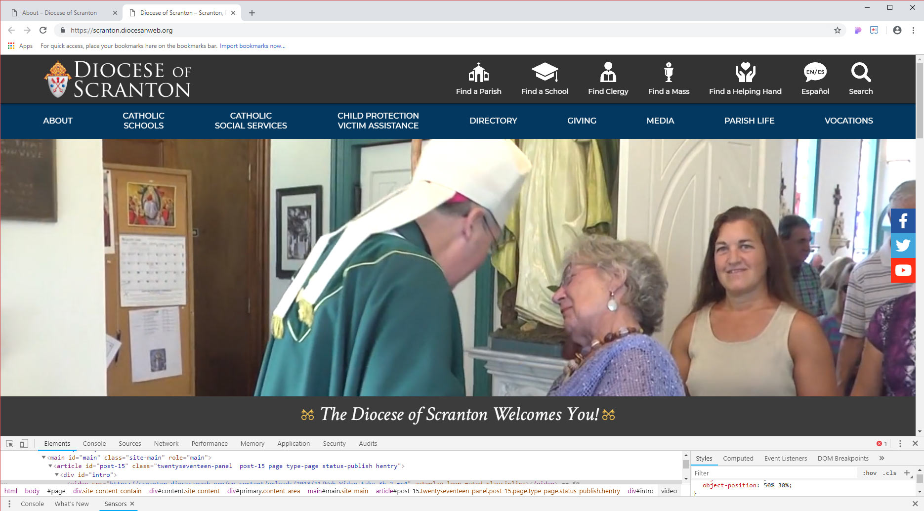 In this third screenshot, I've adjusted the position of the video to be "up" 20%. 0% is the very top, 100% the very bottom, and default is 50% (middle/center). So here object-position: 50% 30%. As you can see, the same "amount" of video is shown due to the available space, but the video is shifted up.