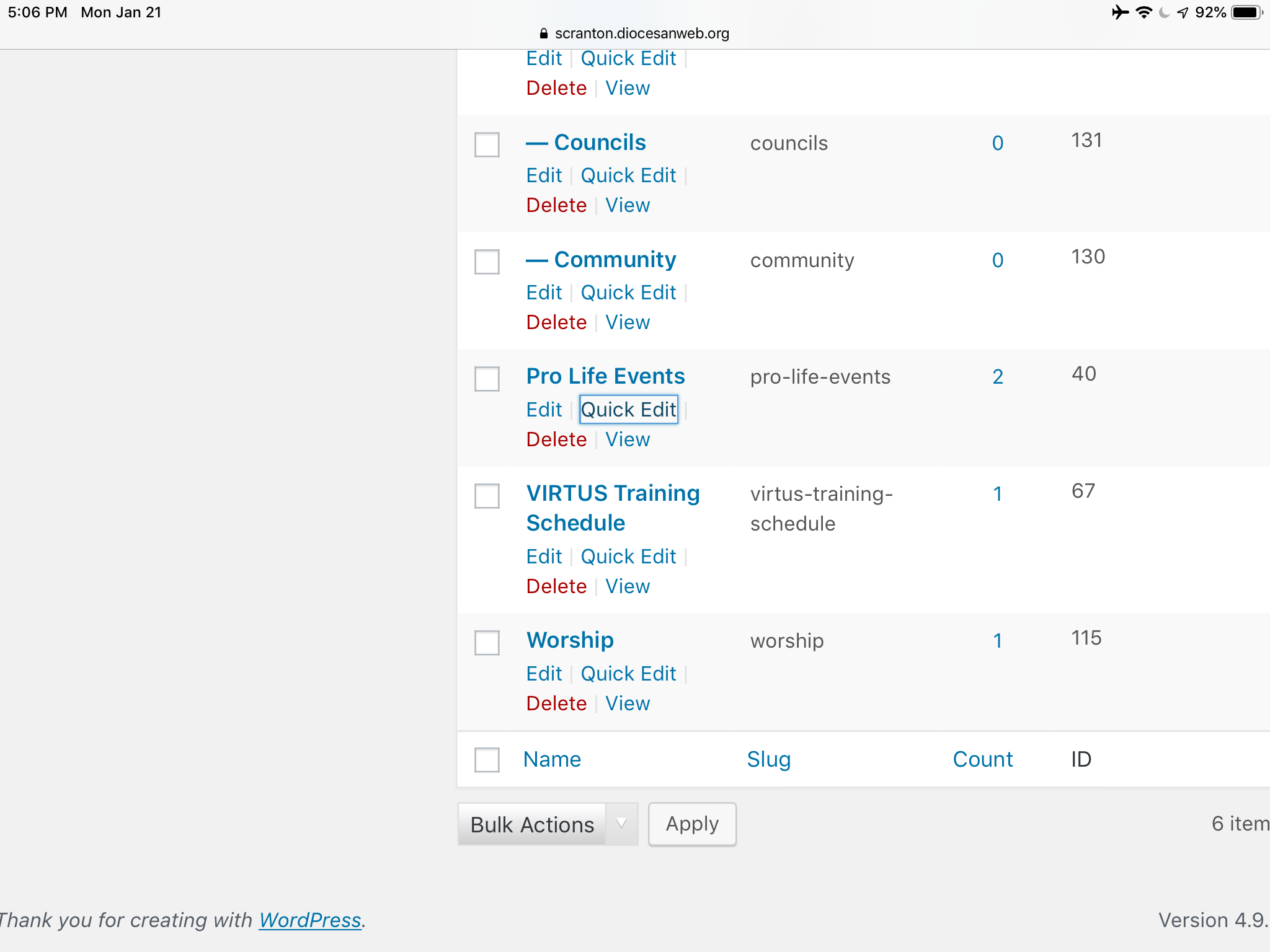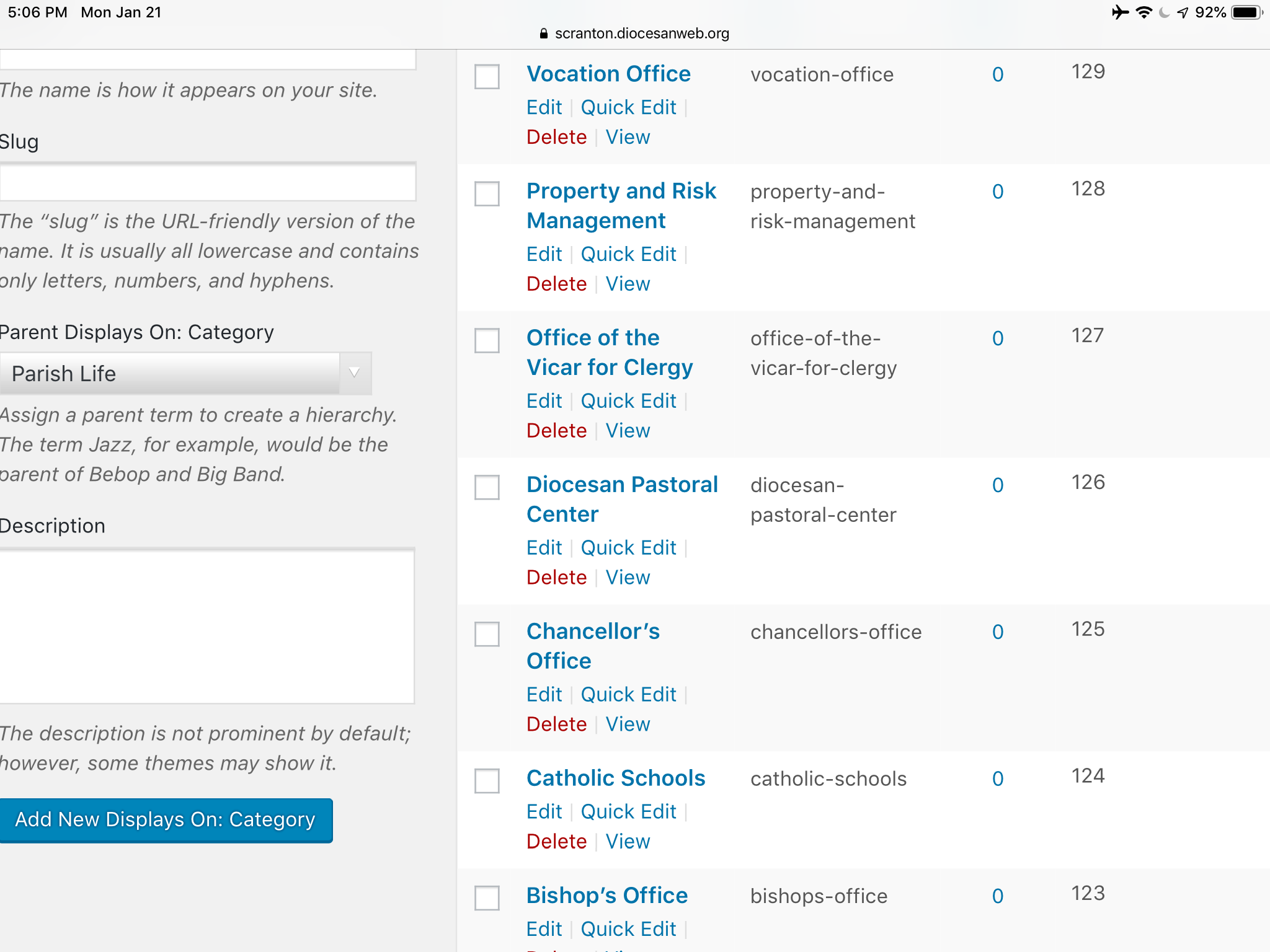 Should I make categories for all Directory Offices (plus Parish Life?) or were there any others you needed?