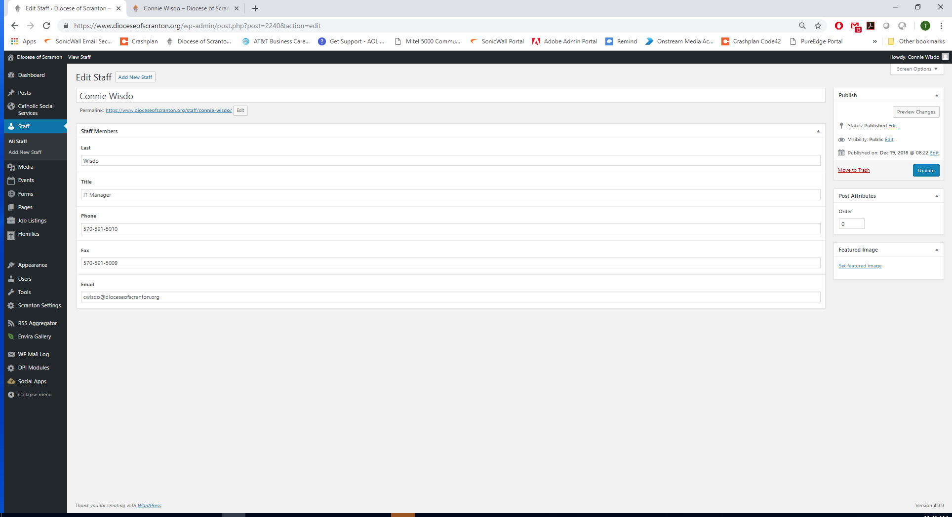 https://www.dioceseofscranton.org/staff/connie-wisdo/and my database entry: