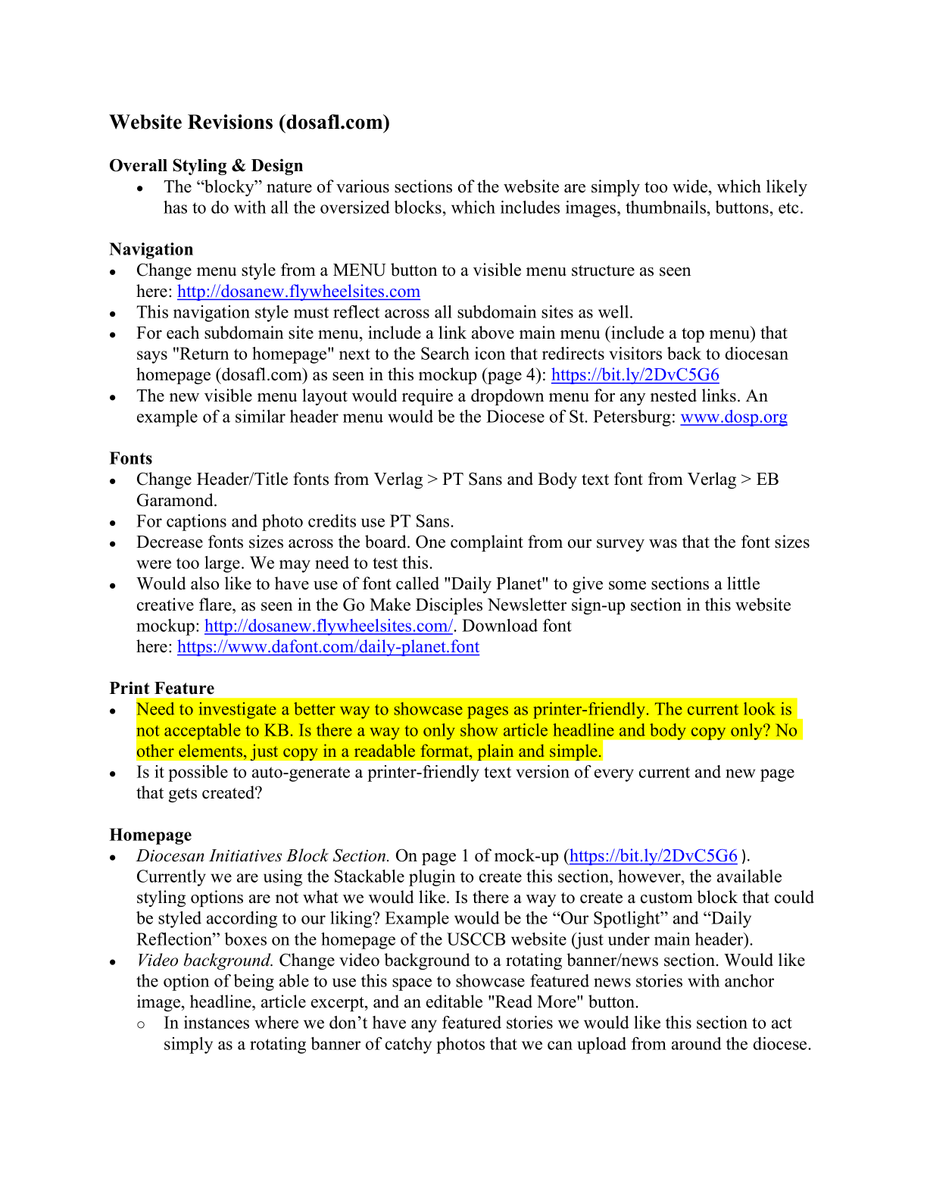 The proposal is a bit confusing as it makes it sounds as though we’re doing a full website redesign. Is there a way to show, of the list of priorities I sent you last week, what parts are covered under this proposal so we have an idea of how much of our “wish list” will be resolved?