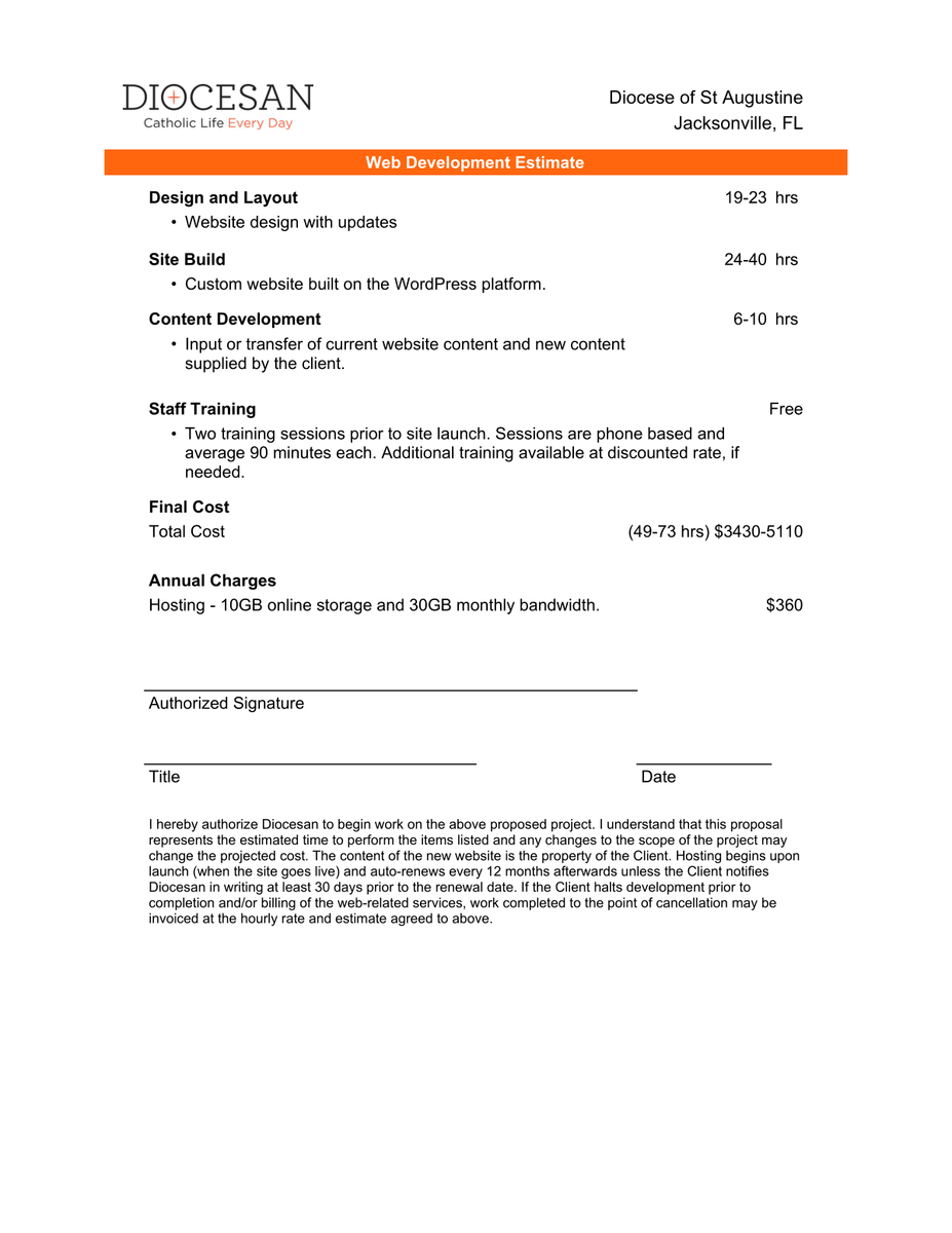 I have attached an updated proposal minus the hosting portion. If you have any questions as you are reviewing the proposal let me know and if needed we can discuss over the phone if that's easier than email.