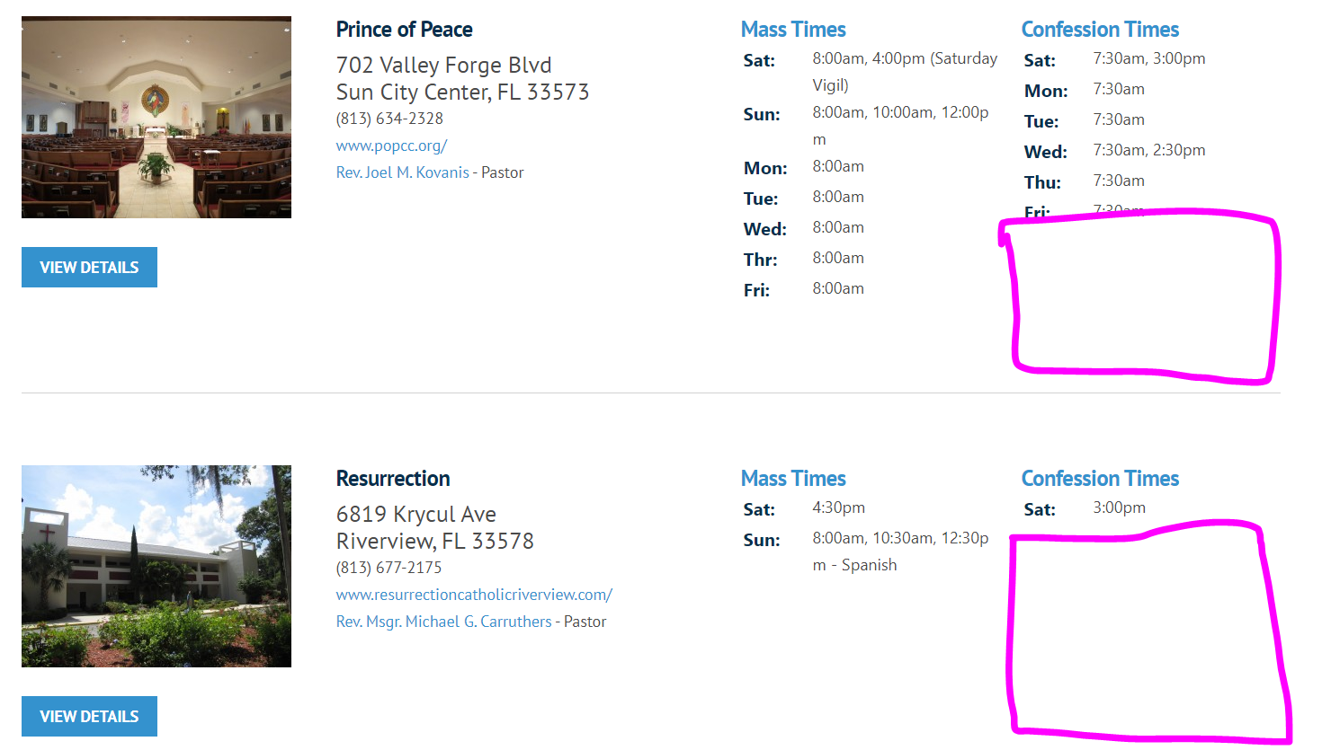 - Blake and Ryan have discussed it and determined that if we are adding Adoration to the Find a Parish that would mean having to add Adoration to the results as well. If we did add it to the results, would this mean it is below Confession Times in the results section? We just want to make sure you understand the visual repercussions of adding more content to the search results. Additionally, it is an item in addition to the official approved design and requires an additional quote: