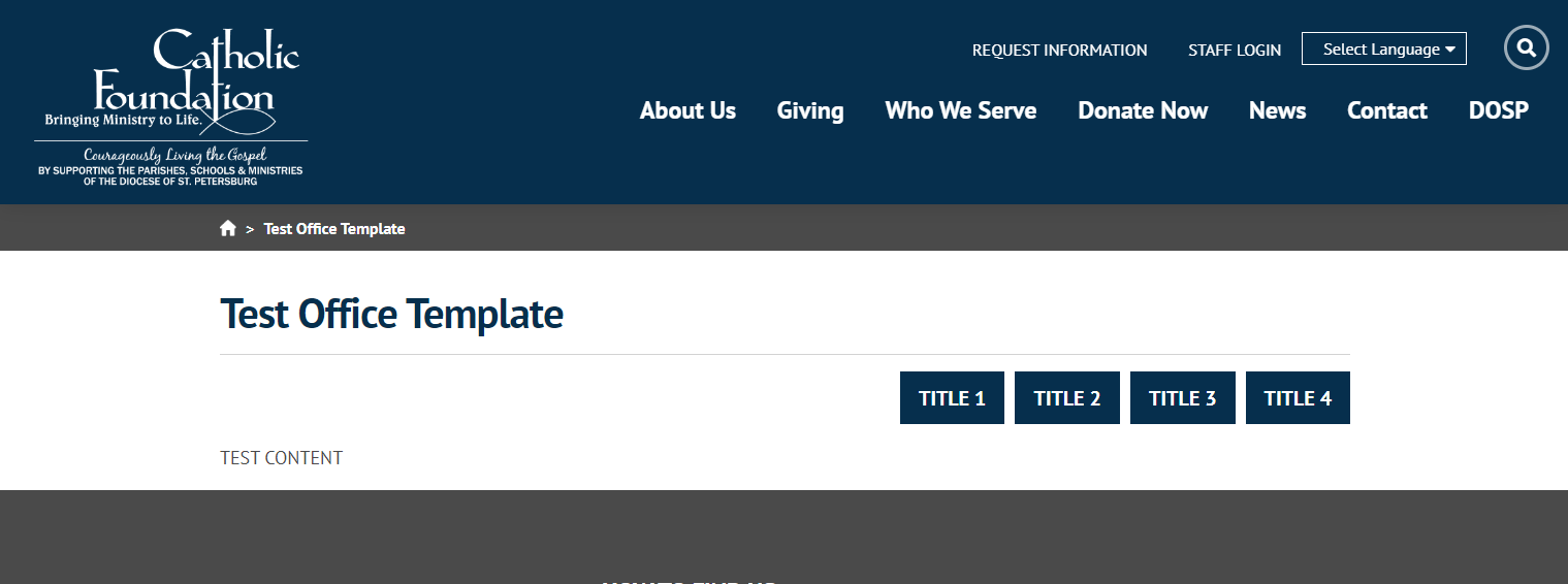 https://catholicfoundation.diocesanweb.org/test-office-template/ - Page on Foundation site with Office Template.