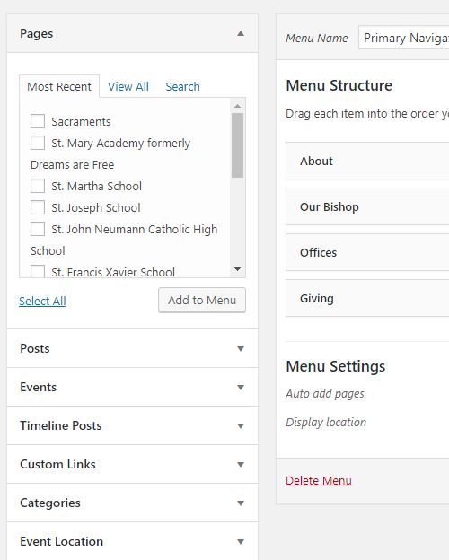 > ‘Giving’ top menu item to point anywhere else, like Stewardship &